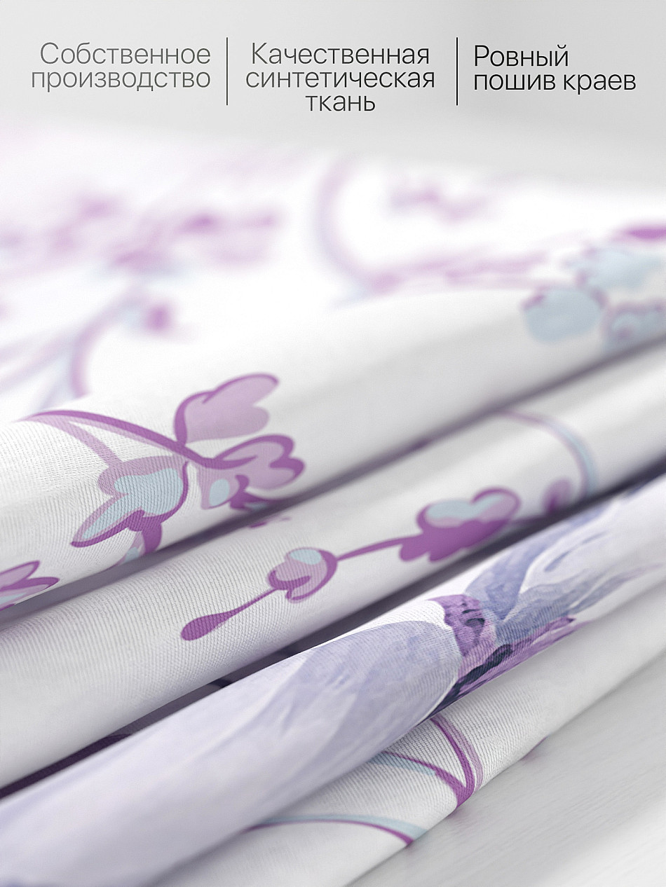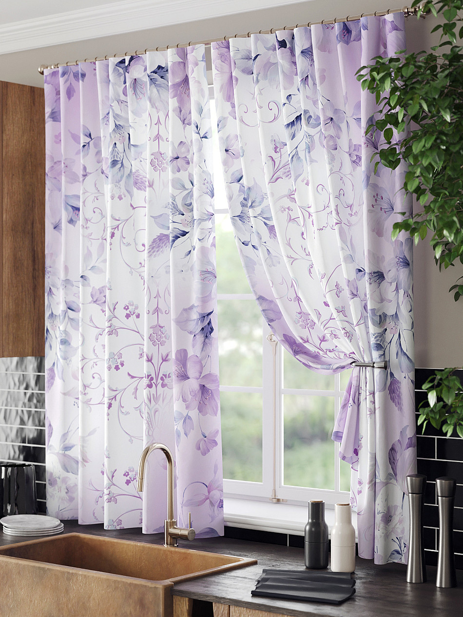 Комплект штор из легкой портьерной ткани (габардин) оформлен печатным рисунком. Печатный рисунок дает широкие возможности обновить интерьер фактически нет требуя ремонта за счет огромного выбора. Ткани с печатным рисунком безопасны и не содержат токсичных веществ. Не смотря на то что, материал легкий, он имеет высокую плотность, мало загрязнятся и не требует особого ухода даже после стирки, что важно для кухонных занавесок. Шторы не выцветают, не растягиваются, превосходно драпируются, образуя струящиеся складки. Прекрасное решение для создания красоты и уюта с помощью уникальных дизайнов.