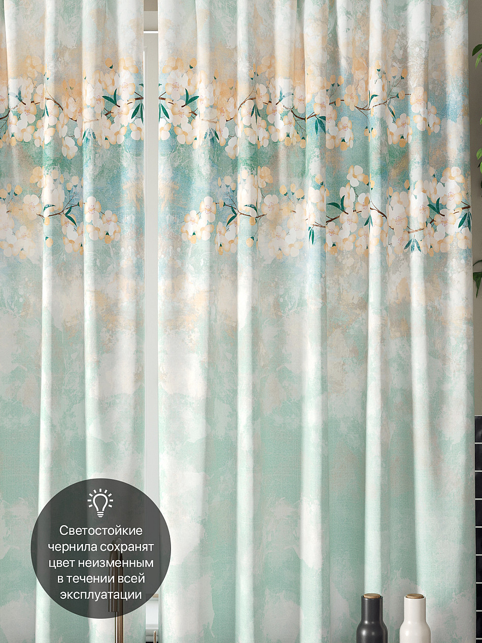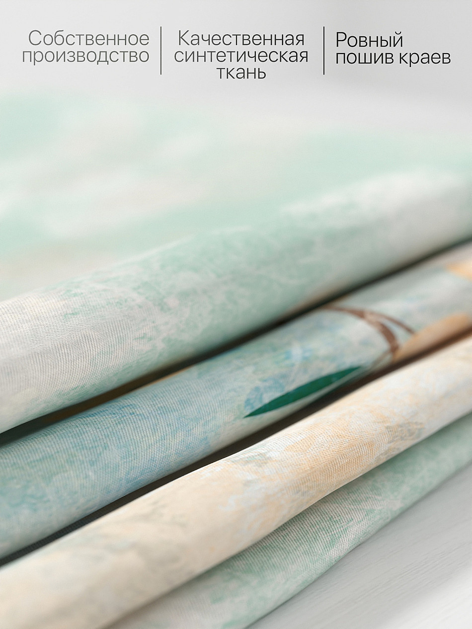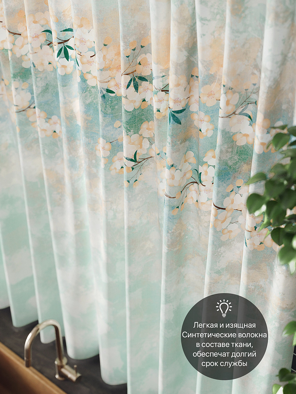 Комплект штор из легкой портьерной ткани (габардин) оформлен печатным рисунком. Печатный рисунок дает широкие возможности обновить интерьер фактически нет требуя ремонта за счет огромного выбора. Ткани с печатным рисунком безопасны и не содержат токсичных веществ. Не смотря на то что, материал легкий, он имеет высокую плотность, мало загрязнятся и не требует особого ухода даже после стирки, что важно для кухонных занавесок. Шторы не выцветают, не растягиваются, превосходно драпируются, образуя струящиеся складки. Прекрасное решение для создания красоты и уюта с помощью уникальных дизайнов.