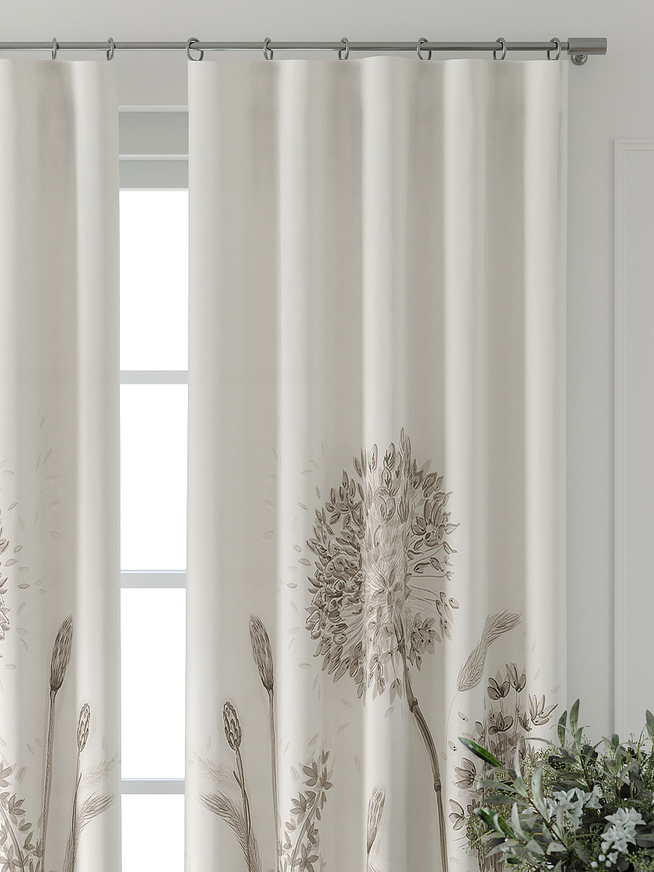 По верхнему краю портьер пришита шторная тесьма 6 см, с ее помощью затянув узелки от кордовых нитей с обеих сторон и стянув их до нужного размера можно сформировать округлые складки, далее вставить крючки в кармашки и повесить на карниз. Обязательно проверьте кордовые нити – они должны быть надежно завязаны, в противном случае во время стягивания они могут вылететь. Шторная тесьма имеет два ряда кармашков, с их помощью можно регулировать не только длину, но и ширину. Такое крепление подходит для всех типов карнизов.