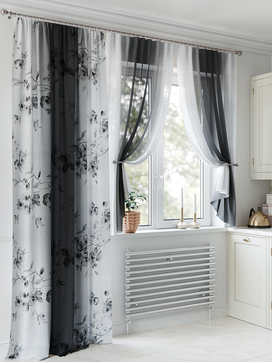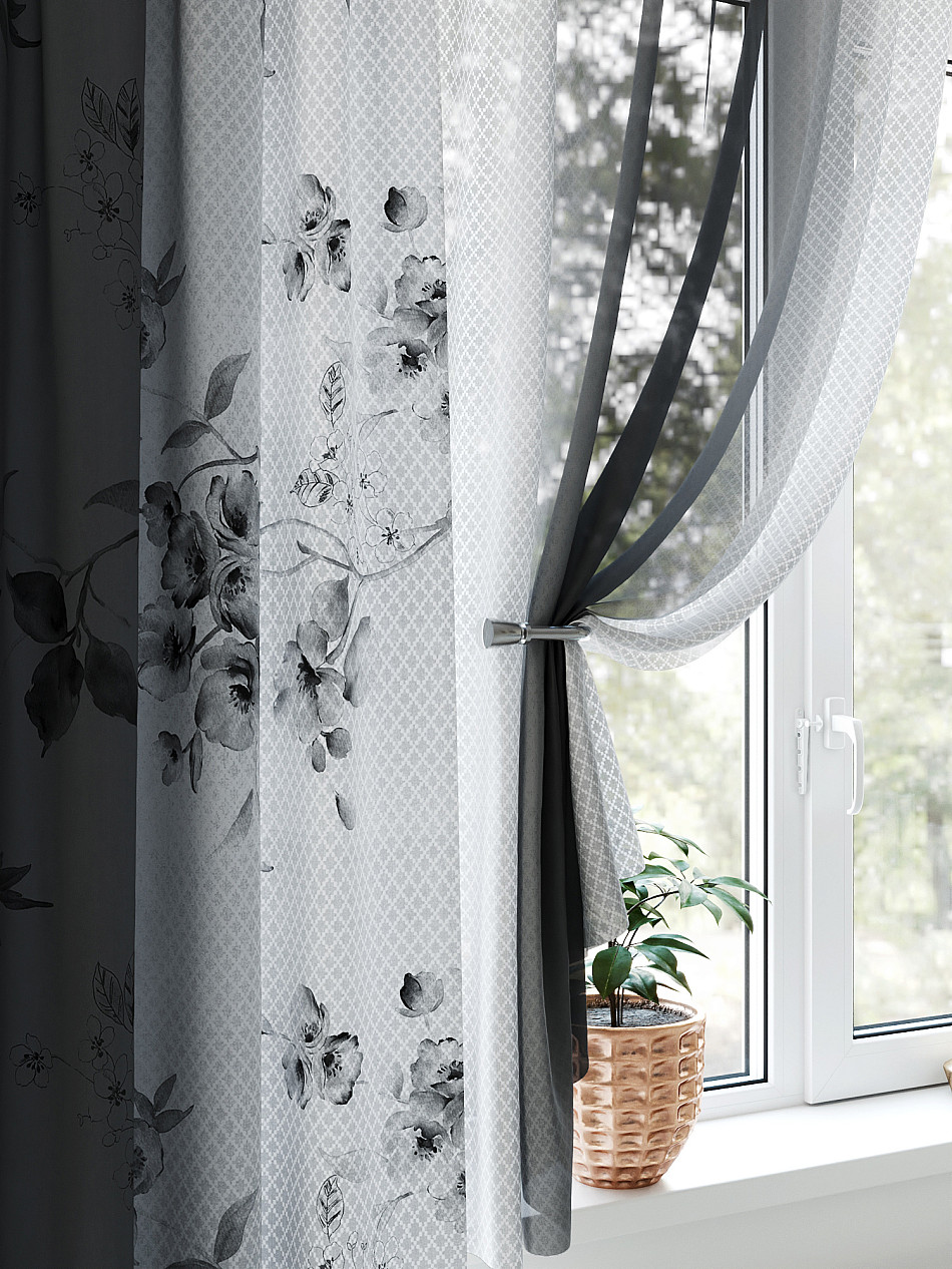 - Состав комплекта Портьера 150х250 см — 1 шт., вуаль 150х180 см — 2 шт.