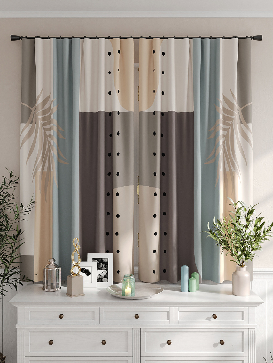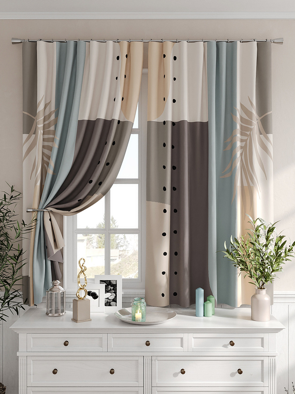 Портьеры 2 шт. Комплект штор из легкой портьерной ткани (габардин) оформлен печатным рисунком. Печатный рисунок дает широкие возможности обновить интерьер фактически не требуя ремонта за счет огромного выбора. Ткани с печатным рисунком безопасны и не содержат токсичных веществ. Не смотря на то, что материал легкий, он имеет высокую плотность, мало загрязнятся и не требует особого ухода даже после стирки, что важно для кухонных занавесок. Шторы не выцветают, не растягиваются, превосходно драпируются, образуя струящиеся складки. Прекрасное решение для создания красоты и уюта с помощью уникальных дизайнов.