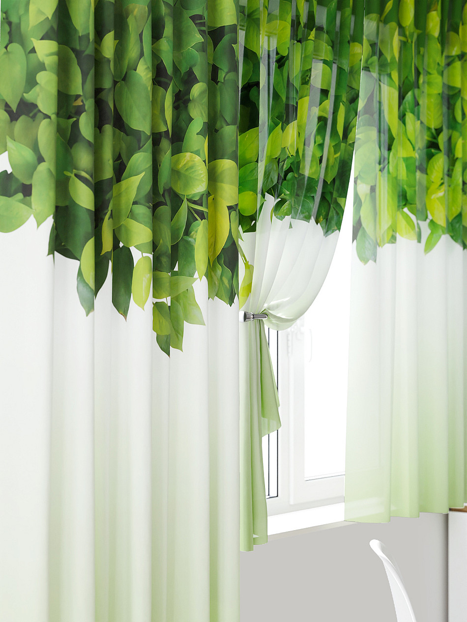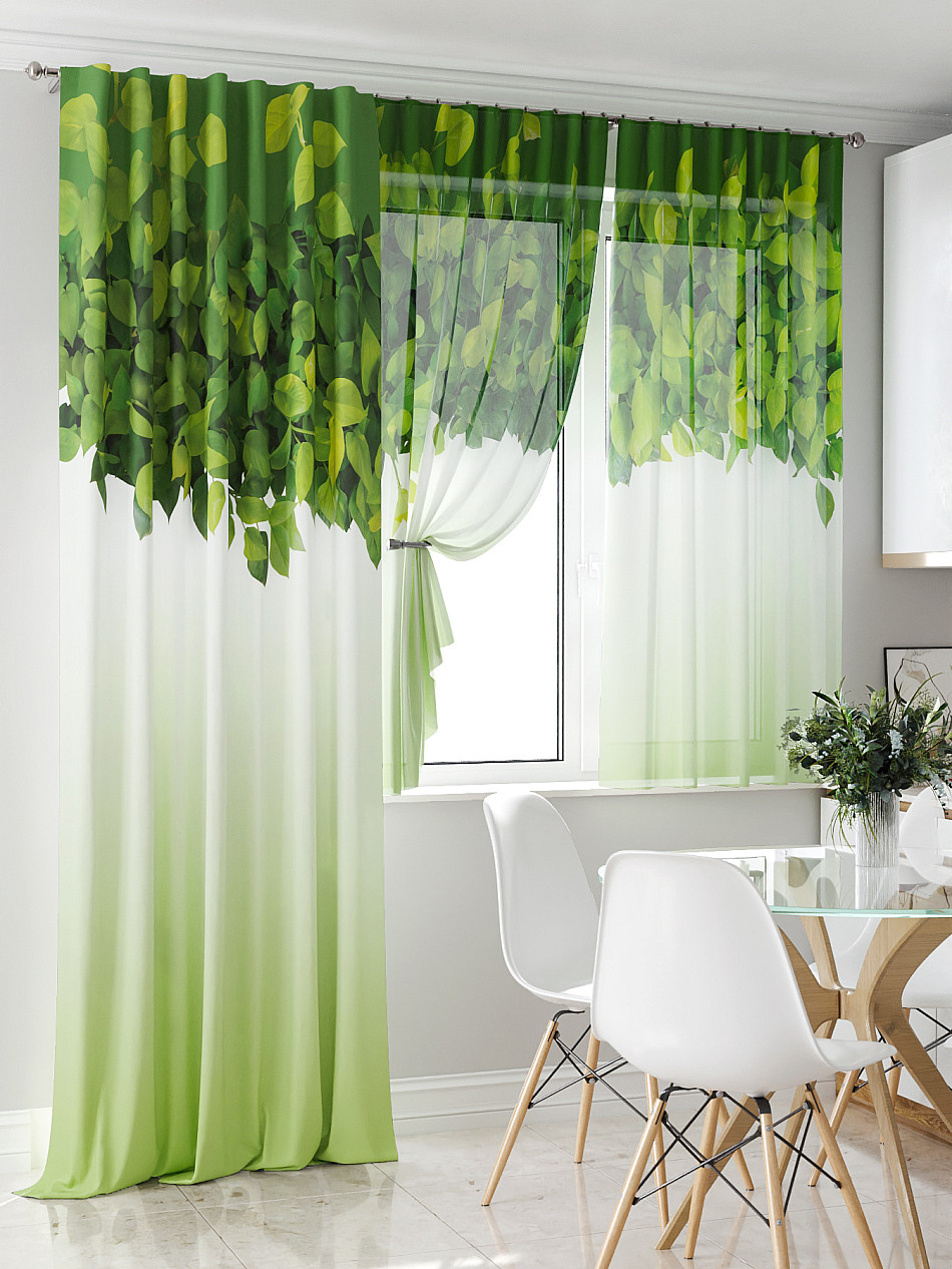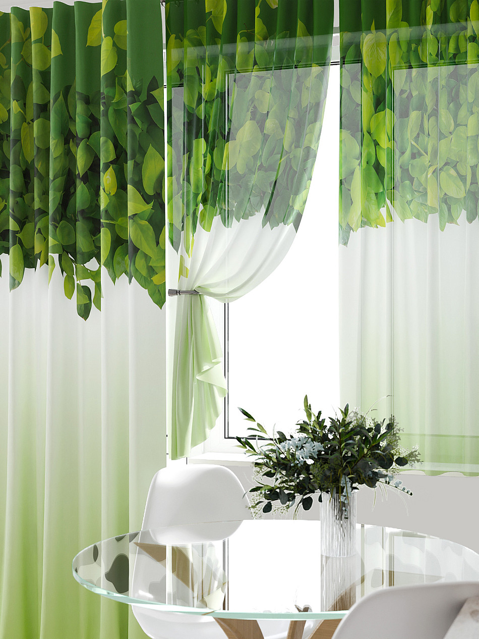 - Вуаль портьеры для кухни с принтом