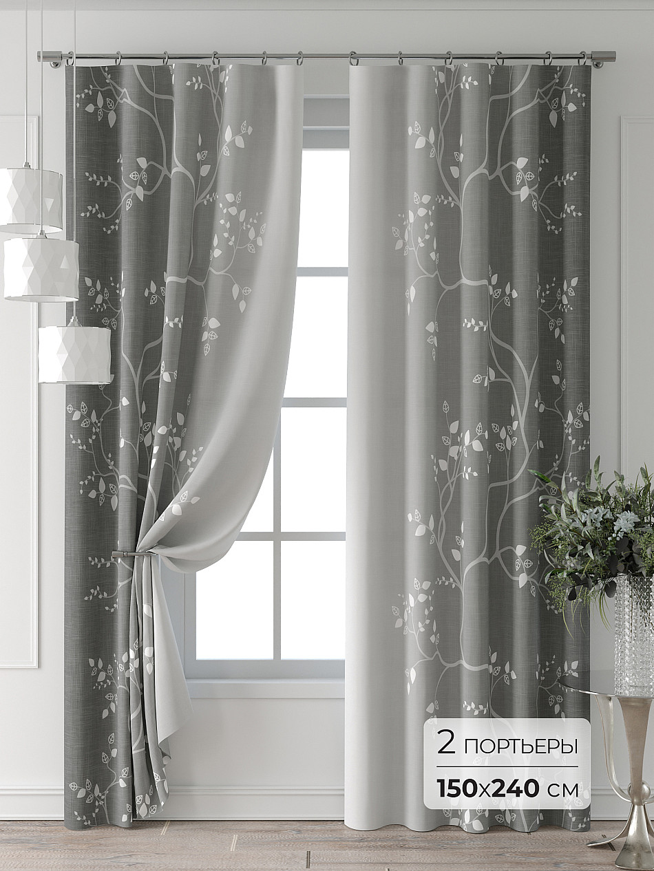 Портьера 150х240 см — 2 шт. ( Изменить высоту) Крепление: шторная лента (крючки), кулиска Подробнее