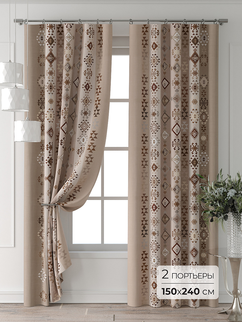 Портьеры 2 шт: Комплект штор из портьерной ткани с печатным рисунком. Фактура ткани прекрасно гармонирует с любым интерьером, а печатный рисунок дает широкие возможности обновить интерьер, фактически не требуя ремонта, за счет огромного выбора. Ткань износостойкая и не требует особого ухода, превосходно драпируется образуя струящиеся складки. Прекрасное решение для создания красоты и уюта с помощью уникальных дизайнов.