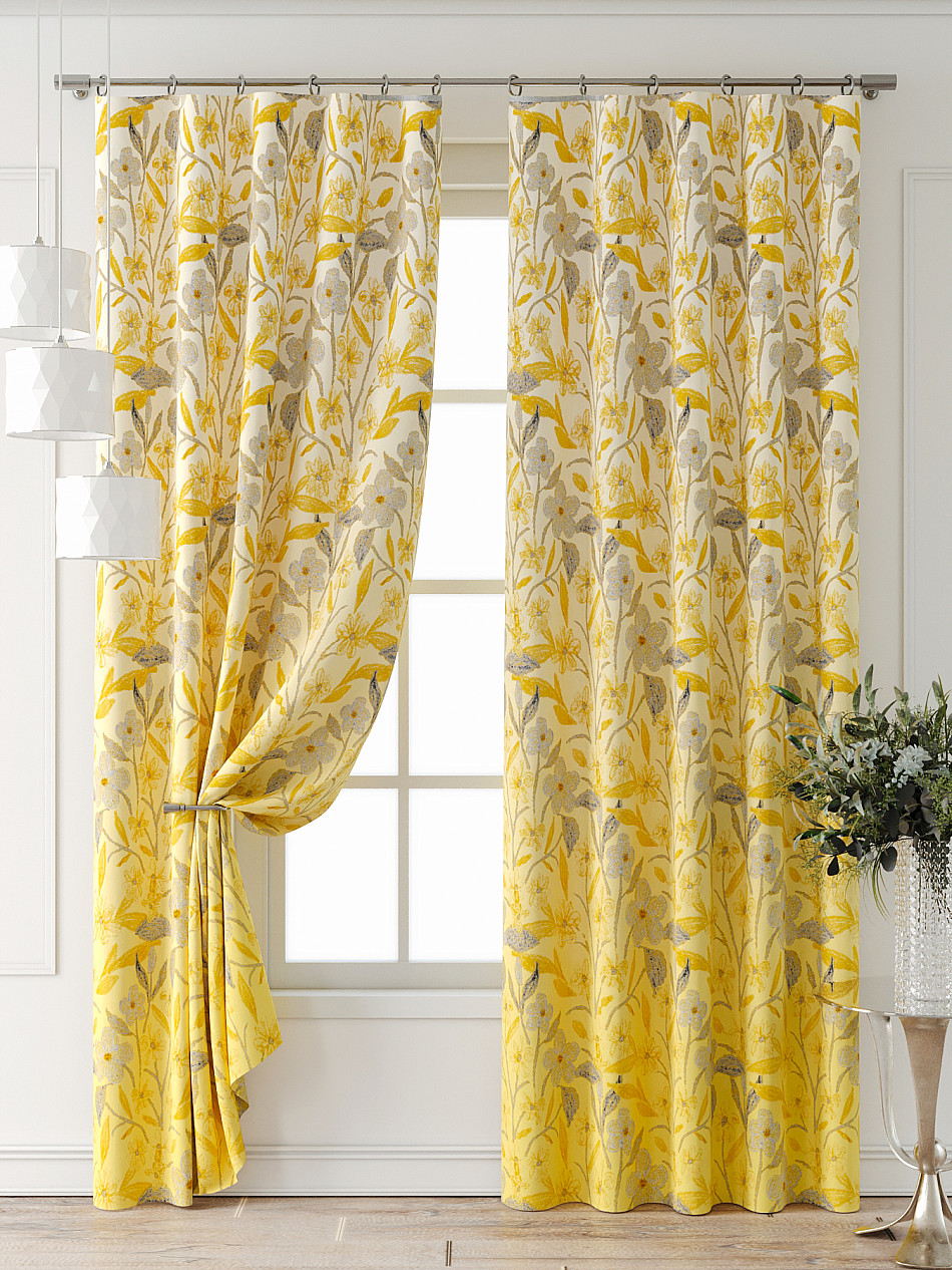 Комплект штор из легкой портьерной ткани (габардин) оформлен печатным рисунком. Печатный рисунок дает широкие возможности обновить интерьер фактически нет требуя ремонта за счет огромного выбора. Ткани с печатным рисунком безопасны и не содержат токсичных веществ. Не смотря на то что, материал легкий, он имеет высокую плотность, мало загрязнятся и не требует особого ухода даже после стирки, что важно для кухонных занавесок. Шторы не выцветают, не растягиваются, превосходно драпируются, образуя струящиеся складки. Прекрасное решение для создания красоты и уюта с помощью уникальных дизайнов.