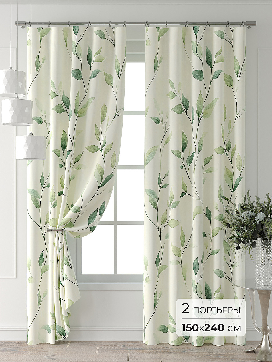 Портьера 150х240 см — 2 шт. ( Изменить высоту) Крепление: шторная лента (крючки), кулиска Подробнее