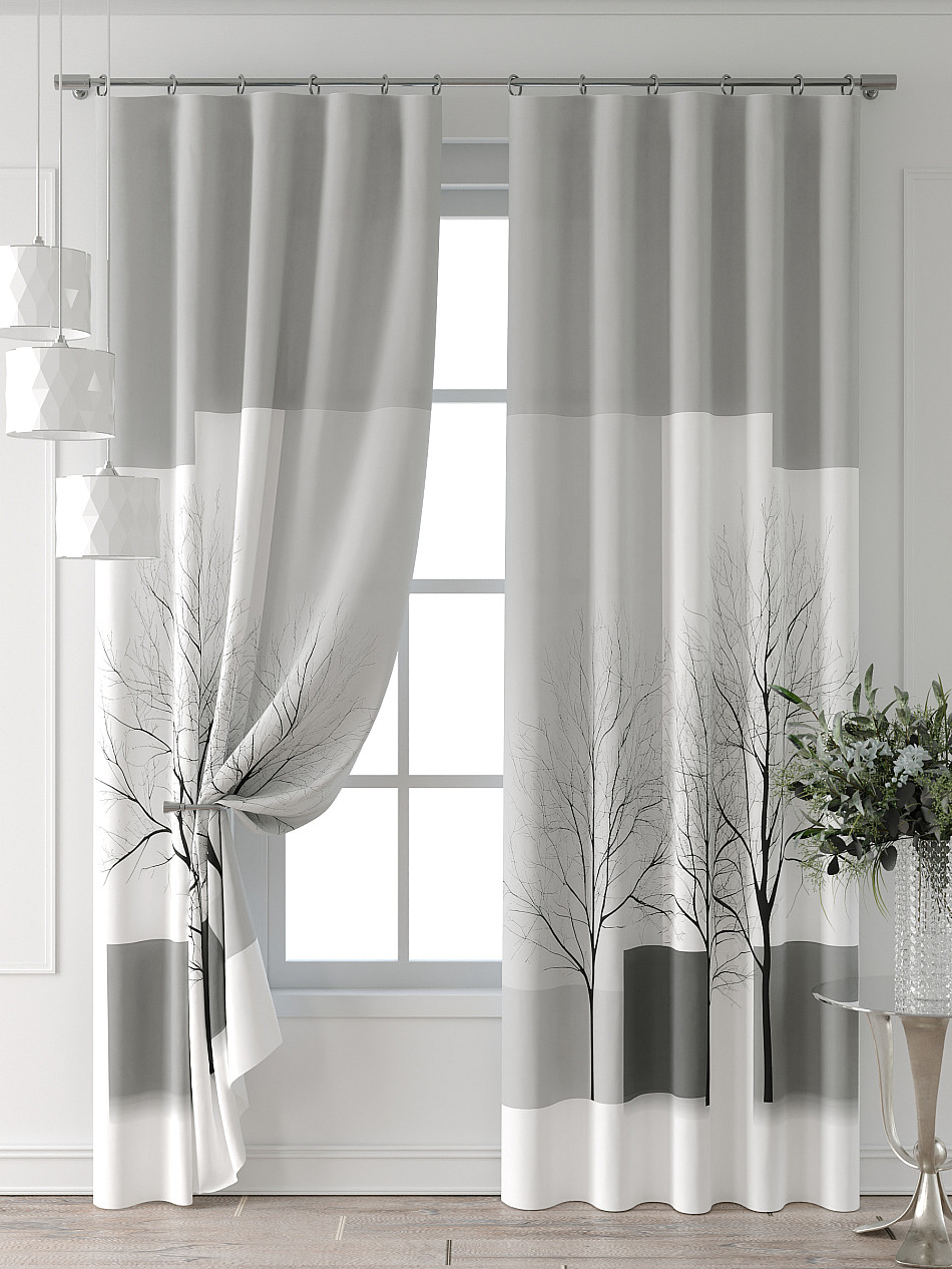 Портьера 2 шт. Подхват - доп.услуга. Комплект штор из легкой портьерной ткани (габардин) оформлен печатным рисунком. Печатный рисунок дает широкие возможности обновить интерьер фактически нет требуя ремонта за счет огромного выбора. Ткани с печатным рисунком безопасны и не содержат токсичных веществ. Не смотря на то что, материал легкий, он имеет высокую плотность, мало загрязнятся и не требует особого ухода даже после стирки, что важно для кухонных занавесок. Шторы не выцветают, не растягиваются, превосходно драпируются, образуя струящиеся складки. Прекрасное решение для создания красоты и уюта с помощью уникальных дизайнов.