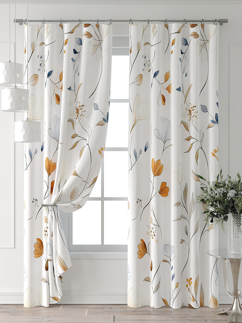 Портьера 2 шт. Подхват - доп.услуга. Комплект штор из легкой портьерной ткани (габардин) оформлен печатным рисунком. Печатный рисунок дает широкие возможности обновить интерьер фактически нет требуя ремонта за счет огромного выбора. Ткани с печатным рисунком безопасны и не содержат токсичных веществ. Не смотря на то что, материал легкий, он имеет высокую плотность, мало загрязнятся и не требует особого ухода даже после стирки, что важно для кухонных занавесок. Шторы не выцветают, не растягиваются, превосходно драпируются, образуя струящиеся складки. Прекрасное решение для создания красоты и уюта с помощью уникальных дизайнов.