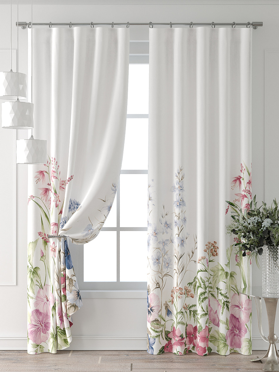 Портьера 2 шт. Подхват - доп.услуга. Комплект штор из легкой портьерной ткани (габардин) оформлен печатным рисунком. Печатный рисунок дает широкие возможности обновить интерьер фактически нет требуя ремонта за счет огромного выбора. Ткани с печатным рисунком безопасны и не содержат токсичных веществ. Не смотря на то что, материал легкий, он имеет высокую плотность, мало загрязнятся и не требует особого ухода даже после стирки, что важно для кухонных занавесок. Шторы не выцветают, не растягиваются, превосходно драпируются, образуя струящиеся складки. Прекрасное решение для создания красоты и уюта с помощью уникальных дизайнов.