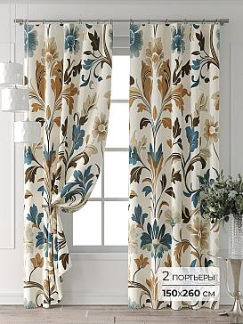 Портьера 2 шт. Подхват - доп.услуга. Комплект штор из легкой портьерной ткани (габардин) оформлен печатным рисунком. Печатный рисунок дает широкие возможности обновить интерьер фактически нет требуя ремонта за счет огромного выбора. Ткани с печатным рисунком безопасны и не содержат токсичных веществ. Не смотря на то что, материал легкий, он имеет высокую плотность, мало загрязнятся и не требует особого ухода даже после стирки, что важно для кухонных занавесок. Шторы не выцветают, не растягиваются, превосходно драпируются, образуя струящиеся складки. Прекрасное решение для создания красоты и уюта с помощью уникальных дизайнов.