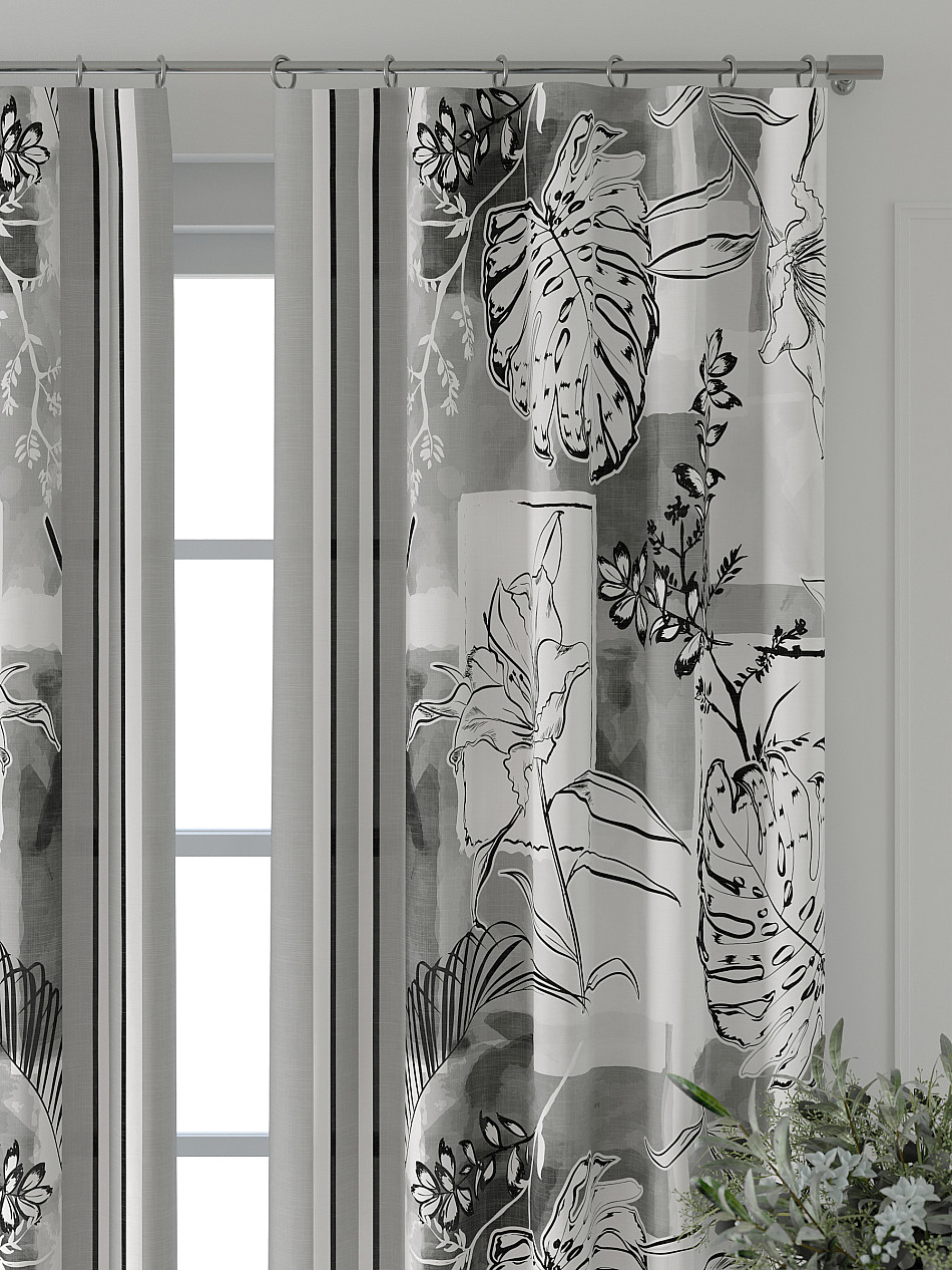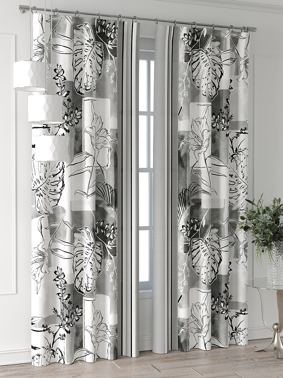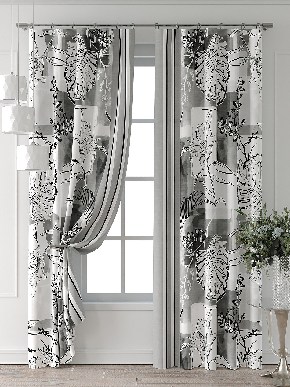 Портьера 2 шт. Подхват - доп.услуга. Комплект штор из легкой портьерной ткани (габардин) оформлен печатным рисунком. Печатный рисунок дает широкие возможности обновить интерьер фактически нет требуя ремонта за счет огромного выбора. Ткани с печатным рисунком безопасны и не содержат токсичных веществ. Не смотря на то что, материал легкий, он имеет высокую плотность, мало загрязнятся и не требует особого ухода даже после стирки, что важно для кухонных занавесок. Шторы не выцветают, не растягиваются, превосходно драпируются, образуя струящиеся складки. Прекрасное решение для создания красоты и уюта с помощью уникальных дизайнов.