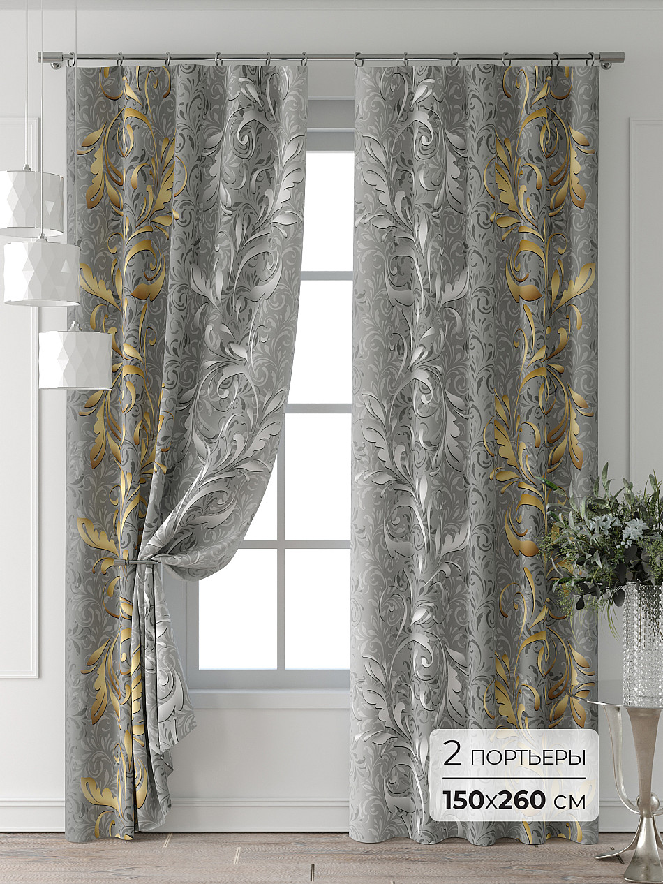 Портьера 150х260 см. — 2 шт. ( Изменить высоту) Крепление: шторная лента (крючки) Подробнее