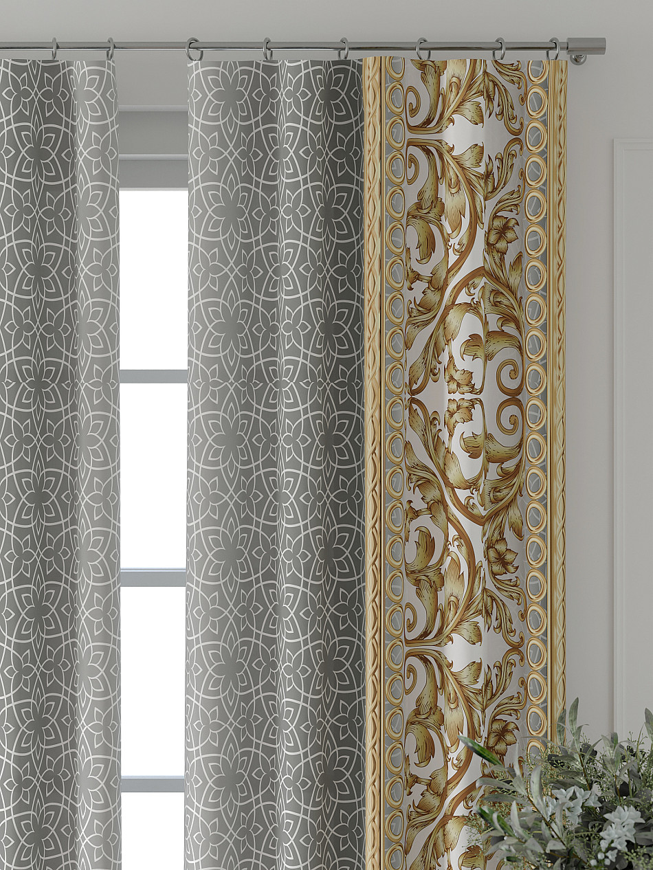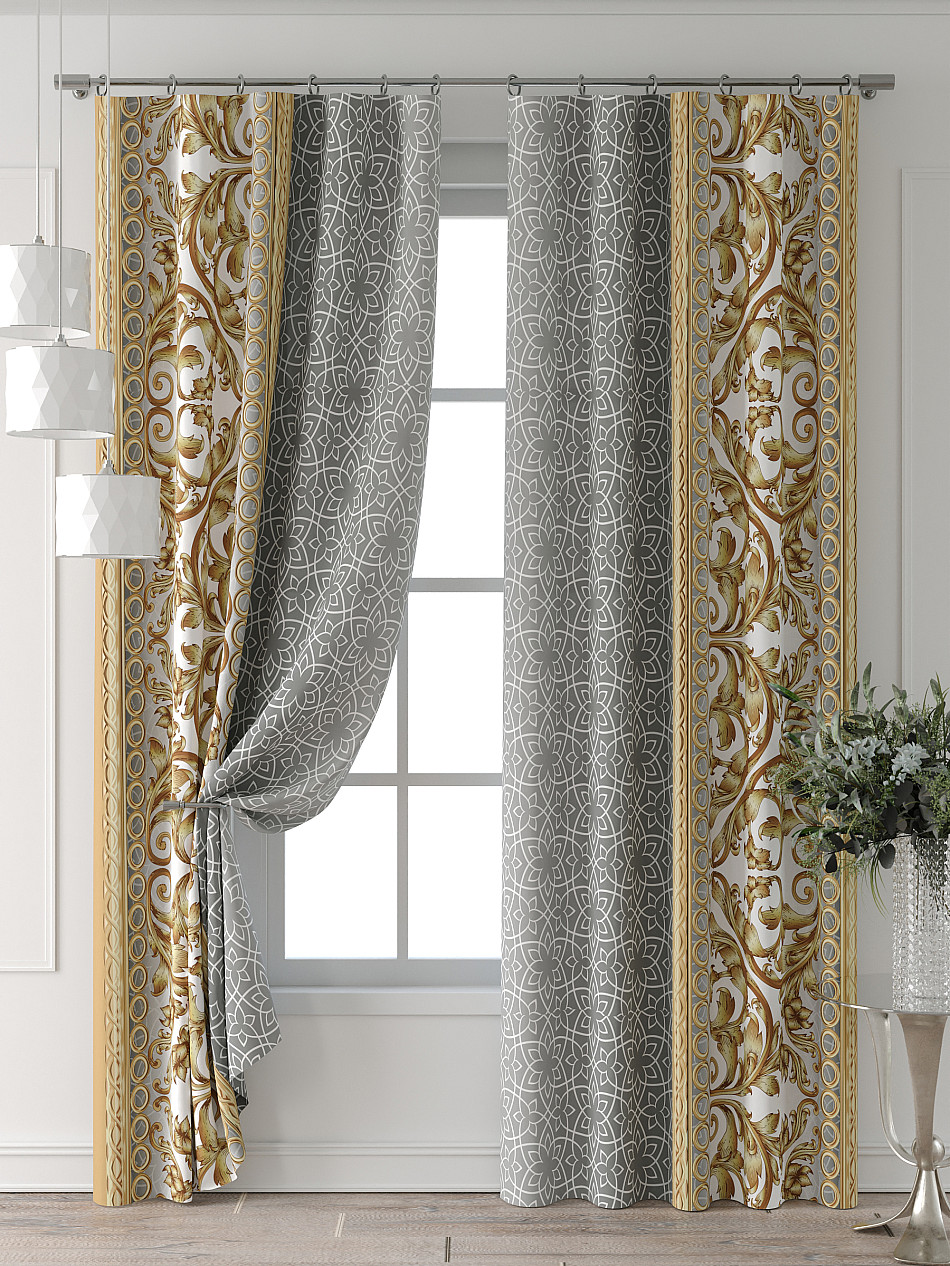 Портьера 2 шт. Подхват - доп.услуга. Комплект штор из легкой портьерной ткани (габардин) оформлен печатным рисунком. Печатный рисунок дает широкие возможности обновить интерьер фактически нет требуя ремонта за счет огромного выбора. Ткани с печатным рисунком безопасны и не содержат токсичных веществ. Не смотря на то что, материал легкий, он имеет высокую плотность, мало загрязнятся и не требует особого ухода даже после стирки, что важно для кухонных занавесок. Шторы не выцветают, не растягиваются, превосходно драпируются, образуя струящиеся складки. Прекрасное решение для создания красоты и уюта с помощью уникальных дизайнов.