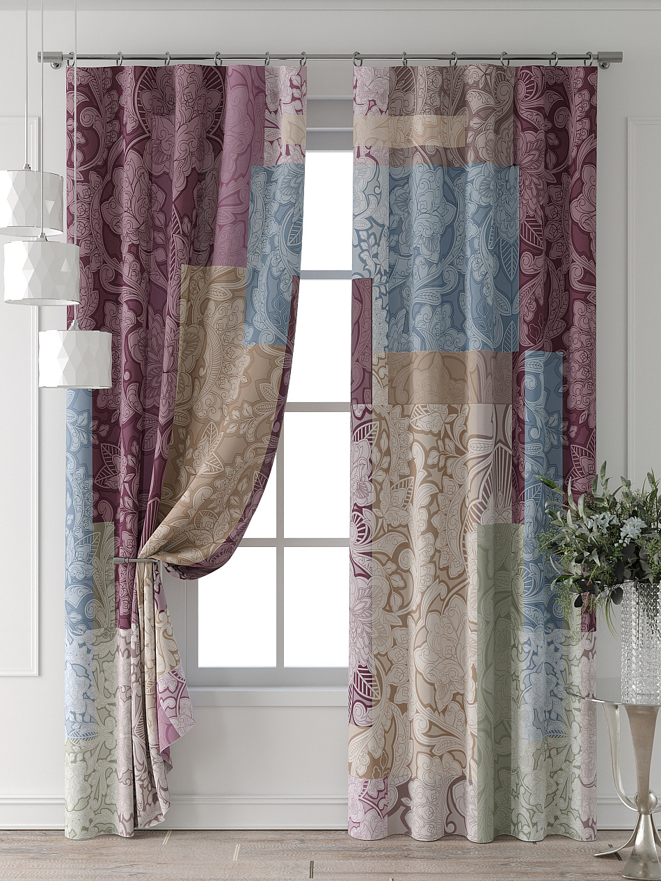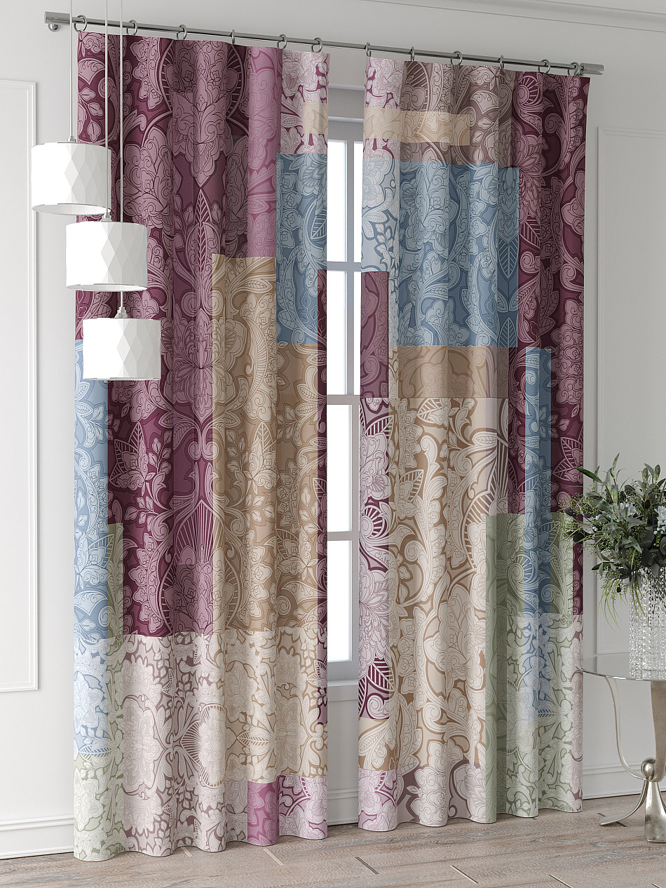 Портьера 2 шт. Подхват - доп.услуга. Комплект штор из легкой портьерной ткани (габардин) оформлен печатным рисунком. Печатный рисунок дает широкие возможности обновить интерьер фактически нет требуя ремонта за счет огромного выбора. Ткани с печатным рисунком безопасны и не содержат токсичных веществ. Не смотря на то что, материал легкий, он имеет высокую плотность, мало загрязнятся и не требует особого ухода даже после стирки, что важно для кухонных занавесок. Шторы не выцветают, не растягиваются, превосходно драпируются, образуя струящиеся складки. Прекрасное решение для создания красоты и уюта с помощью уникальных дизайнов.