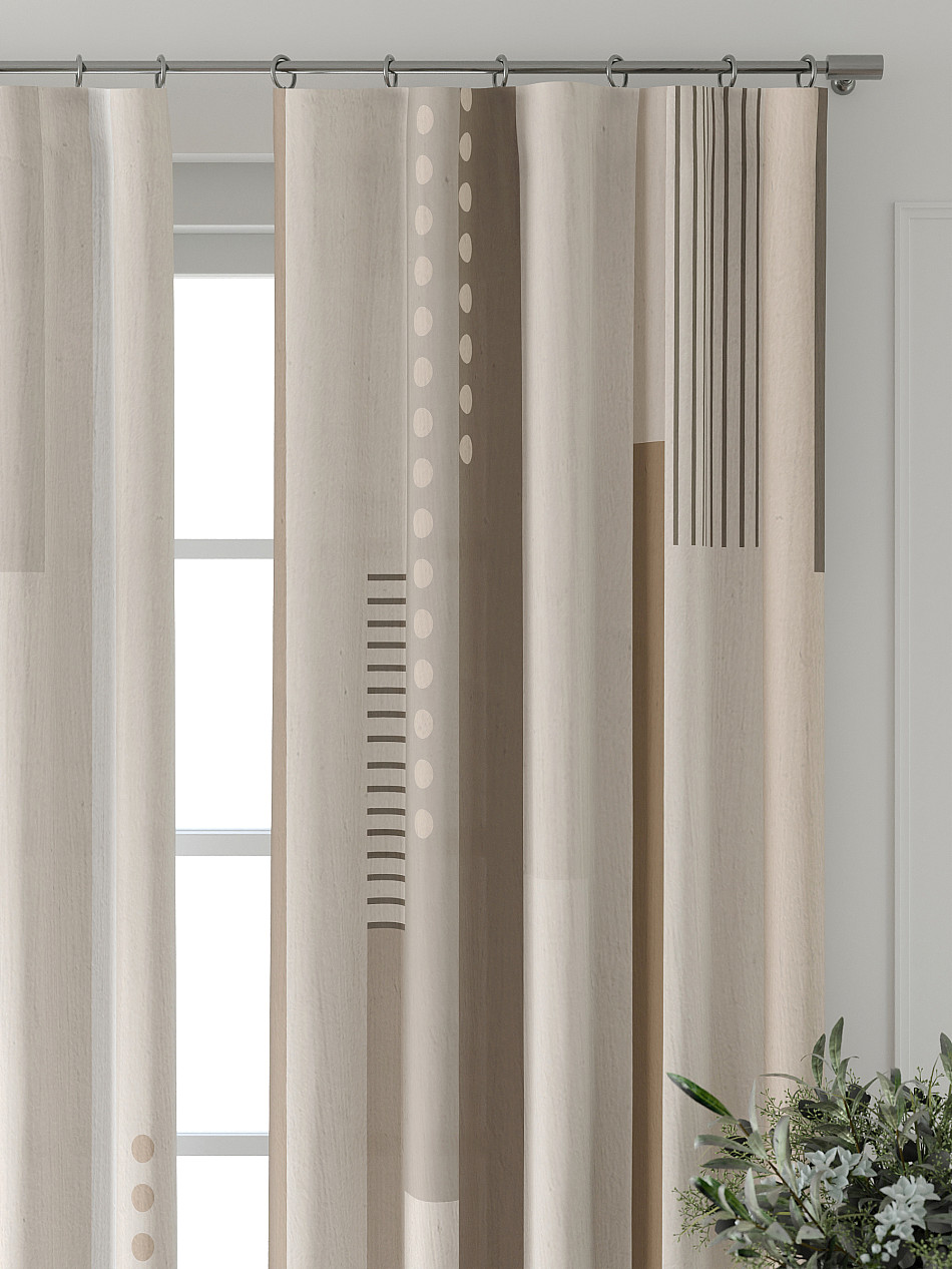 По верхнему краю портьер пришита шторная тесьма 6 см, с ее помощью затянув узелки от кордовых нитей с обеих сторон и стянув их до нужного размера можно сформировать округлые складки, далее вставить крючки в кармашки и повесить на карниз. Обязательно проверьте кордовые нити – они должны быть надежно завязаны, в противном случае во время стягивания они могут вылететь. Шторная тесьма имеет два ряда кармашков, с их помощью можно регулировать не только длину, но и ширину. Такое крепление подходит для всех типов карнизов.