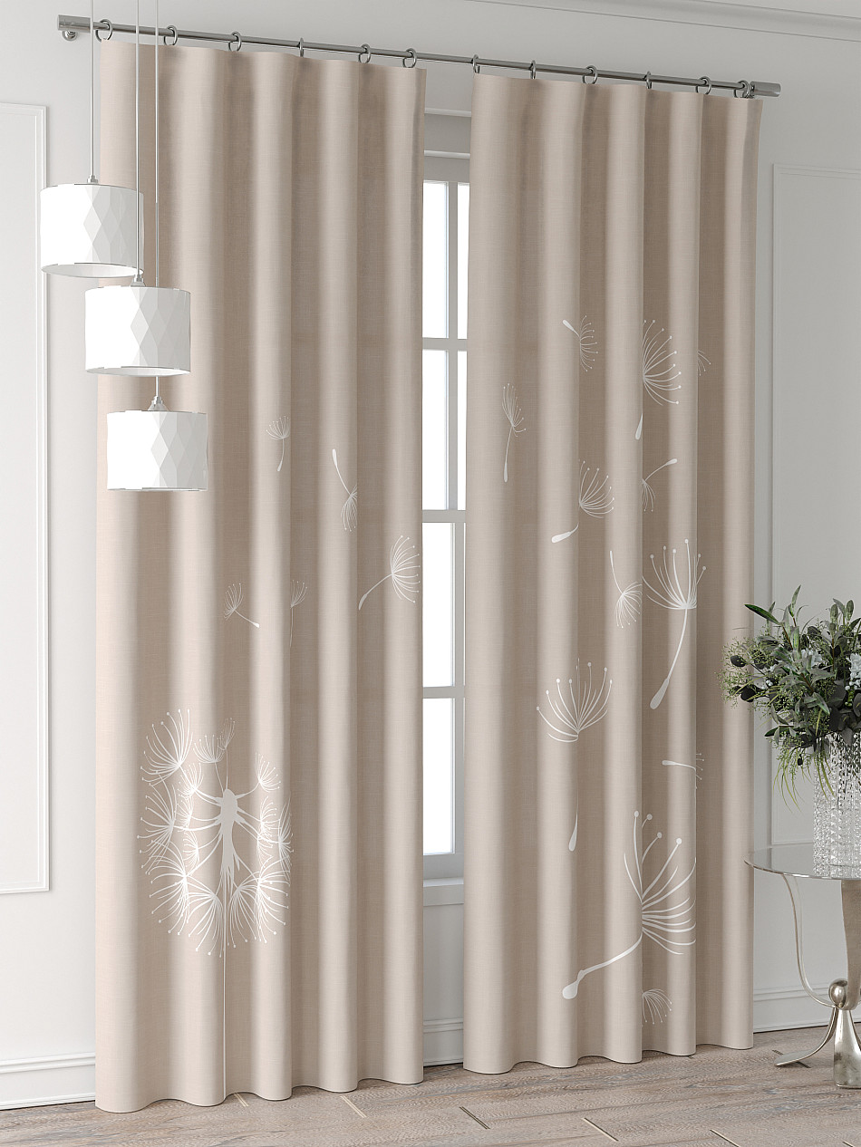 По верхнему краю портьеры пришита шторная тесьма 6 см, с ее помощью затянув узелки от кордовых нитей с обеих сторон и стянув их до нужного размера можно сформировать округлые складки, далее вставить крючки в кармашки и повесить на карниз. Обязательно проверьте кордовые нити – они должны быть надежно завязаны, в противном случае во время стягивания они могут вылететь. Шторная тесьма имеет два ряда кармашков, с их помощью можно регулировать не только длину, но и ширину. Такое крепление подходит для всех типов карнизов.