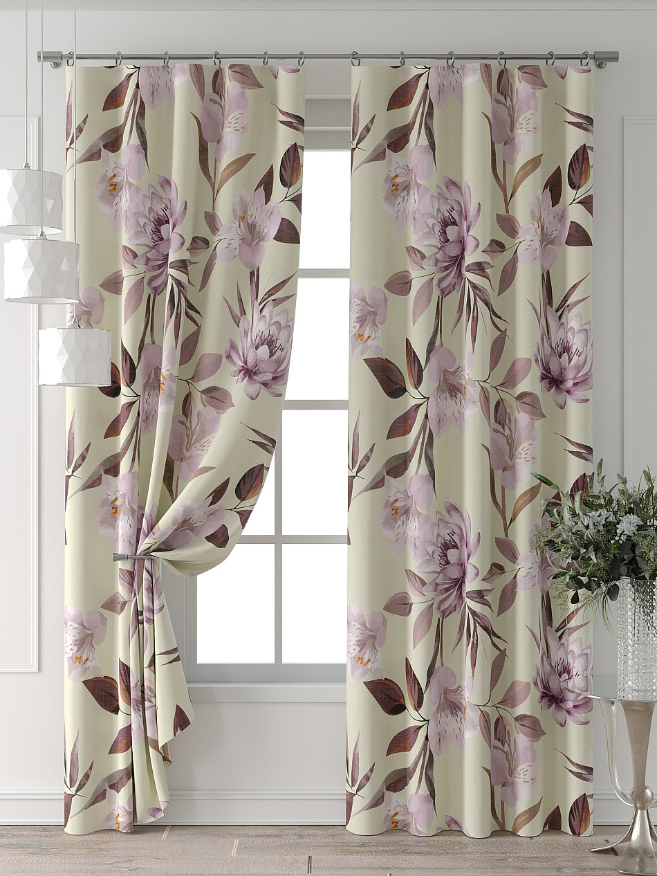 Портьера 2 шт. Подхват - доп.услуга. Комплект штор из легкой портьерной ткани (габардин) оформлен печатным рисунком. Печатный рисунок дает широкие возможности обновить интерьер фактически нет требуя ремонта за счет огромного выбора. Ткани с печатным рисунком безопасны и не содержат токсичных веществ. Не смотря на то что, материал легкий, он имеет высокую плотность, мало загрязнятся и не требует особого ухода даже после стирки, что важно для кухонных занавесок. Шторы не выцветают, не растягиваются, превосходно драпируются, образуя струящиеся складки. Прекрасное решение для создания красоты и уюта с помощью уникальных дизайнов.