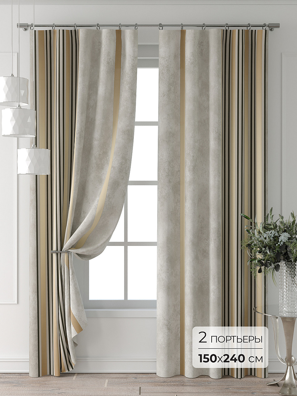 Портьера 150х240 см — 2 шт. ( Изменить высоту) Крепление: шторная лента (крючки), кулиска Подробнее
