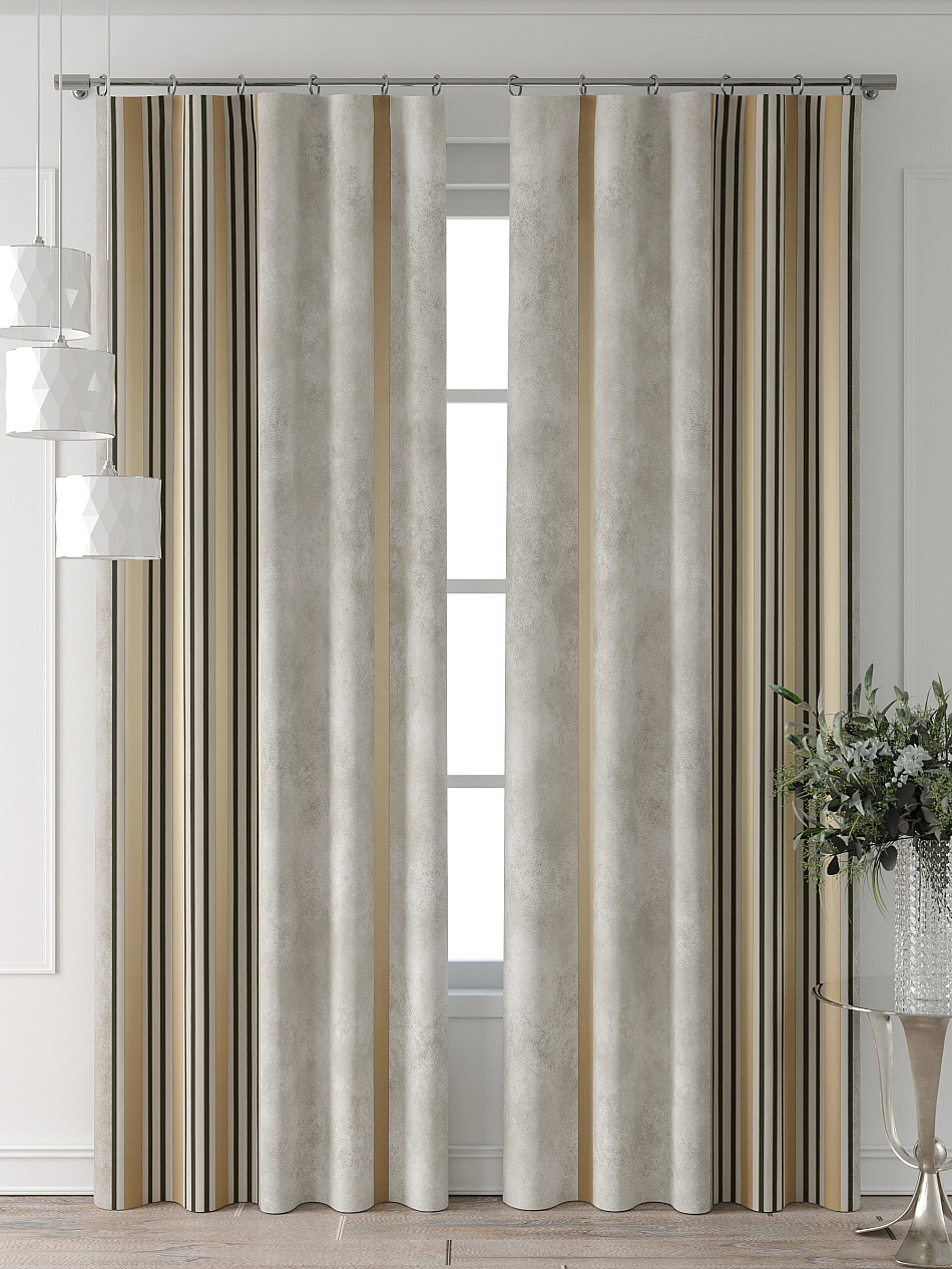 Габардин представляет собой целую группу тканей, которые отличаются содержанием и сочетанием различных волокон – хлопка, шелка, шерсти или синтетики. В зависимости от состава материала, шторы из габардина могут быть разными по плотности и внешнему виду, но всегда отличаются характерным декоративным рубчиком на поверхности. Габардин – идеальная ткань для пошива штор, поскольку она отлично дышит, не мнется, легкая и мягкая на ощупь, но при этом прочная и хорошо защищает от солнечных лучей.