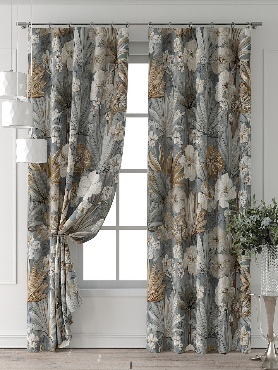 Портьеры 2 шт: Комплект штор из портьерной ткани с печатным рисунком. Фактура ткани прекрасно гармонирует с любым интерьером, а печатный рисунок дает широкие возможности обновить интерьер, фактически не требуя ремонта, за счет огромного выбора. Ткань износостойкая и не требует особого ухода, превосходно драпируется образуя струящиеся складки. Прекрасное решение для создания красоты и уюта с помощью уникальных дизайнов.