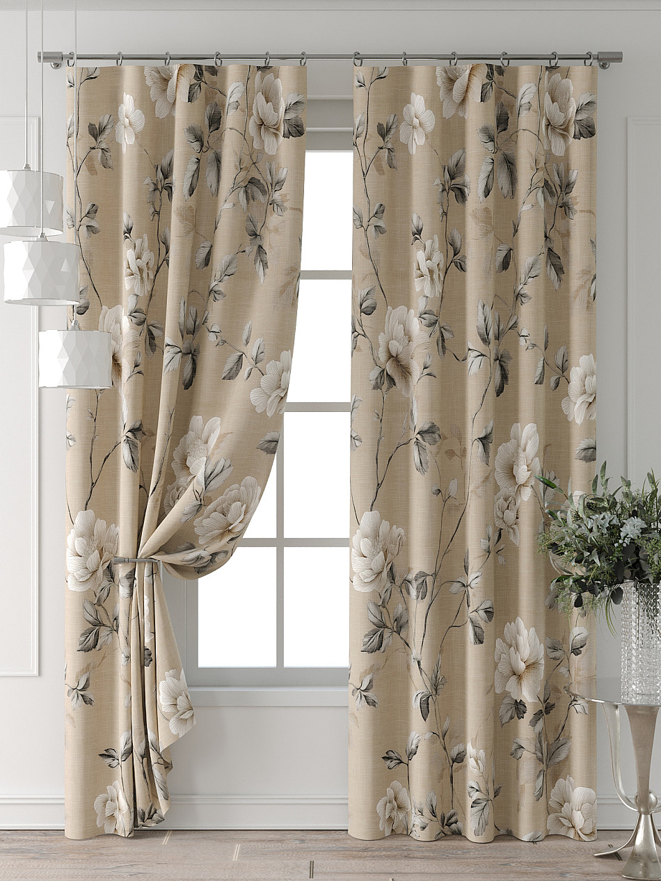 Портьера 2 шт. Подхват - доп.услуга. Комплект штор из легкой портьерной ткани (габардин) оформлен печатным рисунком. Печатный рисунок дает широкие возможности обновить интерьер фактически нет требуя ремонта за счет огромного выбора. Ткани с печатным рисунком безопасны и не содержат токсичных веществ. Не смотря на то что, материал легкий, он имеет высокую плотность, мало загрязнятся и не требует особого ухода даже после стирки, что важно для кухонных занавесок. Шторы не выцветают, не растягиваются, превосходно драпируются, образуя струящиеся складки. Прекрасное решение для создания красоты и уюта с помощью уникальных дизайнов.