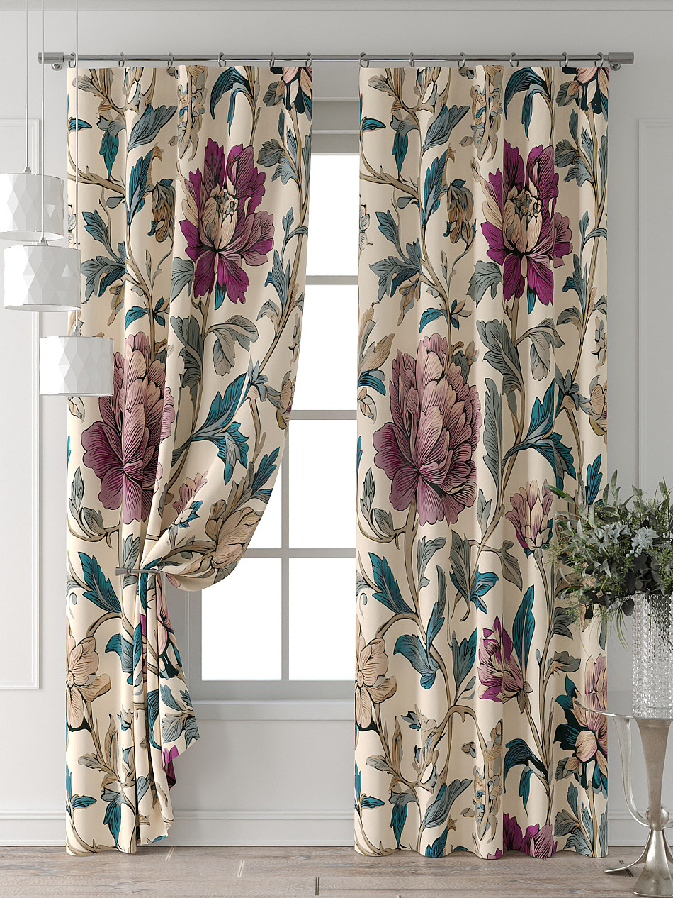 Портьера 2 шт. Подхват - доп.услуга. Комплект штор из легкой портьерной ткани (габардин) оформлен печатным рисунком. Печатный рисунок дает широкие возможности обновить интерьер фактически нет требуя ремонта за счет огромного выбора. Ткани с печатным рисунком безопасны и не содержат токсичных веществ. Не смотря на то что, материал легкий, он имеет высокую плотность, мало загрязнятся и не требует особого ухода даже после стирки, что важно для кухонных занавесок. Шторы не выцветают, не растягиваются, превосходно драпируются, образуя струящиеся складки. Прекрасное решение для создания красоты и уюта с помощью уникальных дизайнов.