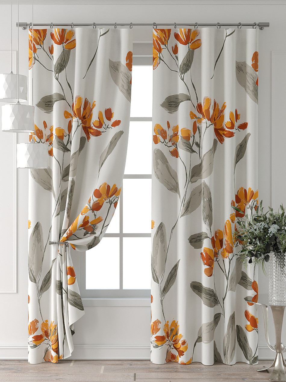 Портьера 2 шт. Подхват - доп.услуга. Комплект штор из легкой портьерной ткани (габардин) оформлен печатным рисунком. Печатный рисунок дает широкие возможности обновить интерьер фактически нет требуя ремонта за счет огромного выбора. Ткани с печатным рисунком безопасны и не содержат токсичных веществ. Не смотря на то что, материал легкий, он имеет высокую плотность, мало загрязнятся и не требует особого ухода даже после стирки, что важно для кухонных занавесок. Шторы не выцветают, не растягиваются, превосходно драпируются, образуя струящиеся складки. Прекрасное решение для создания красоты и уюта с помощью уникальных дизайнов.