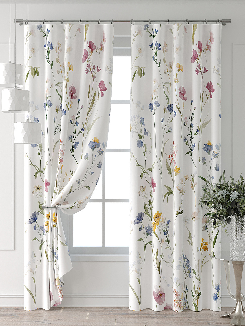 Портьера 2 шт. Подхват - доп.услуга. Комплект штор из легкой портьерной ткани (габардин) оформлен печатным рисунком. Печатный рисунок дает широкие возможности обновить интерьер фактически нет требуя ремонта за счет огромного выбора. Ткани с печатным рисунком безопасны и не содержат токсичных веществ. Не смотря на то что, материал легкий, он имеет высокую плотность, мало загрязнятся и не требует особого ухода даже после стирки, что важно для кухонных занавесок. Шторы не выцветают, не растягиваются, превосходно драпируются, образуя струящиеся складки. Прекрасное решение для создания красоты и уюта с помощью уникальных дизайнов.