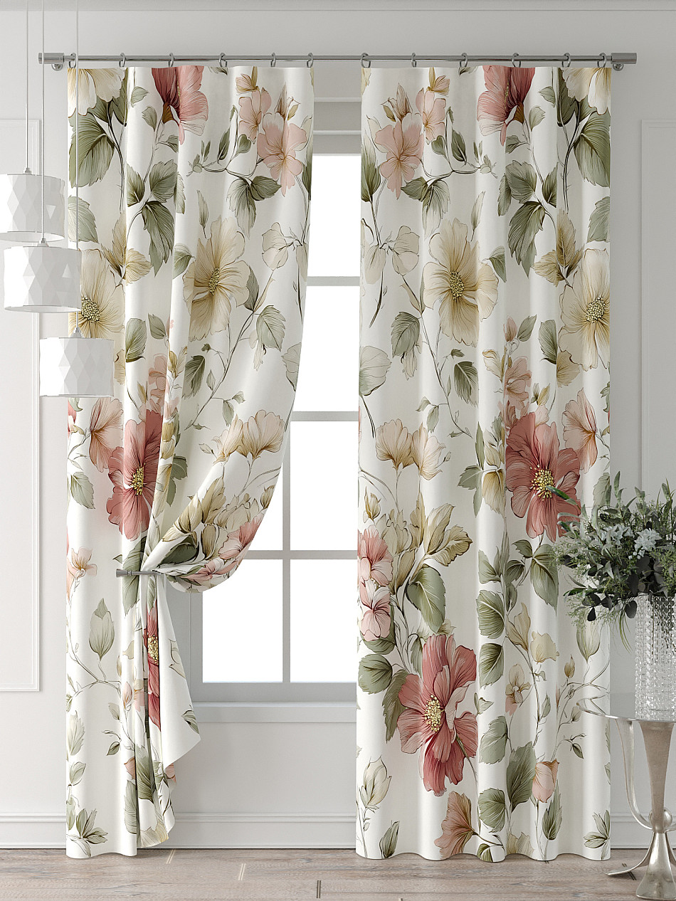 Портьера 2 шт. Подхват - доп.услуга. Комплект штор из легкой портьерной ткани (габардин) оформлен печатным рисунком. Печатный рисунок дает широкие возможности обновить интерьер фактически нет требуя ремонта за счет огромного выбора. Ткани с печатным рисунком безопасны и не содержат токсичных веществ. Не смотря на то что, материал легкий, он имеет высокую плотность, мало загрязнятся и не требует особого ухода даже после стирки, что важно для кухонных занавесок. Шторы не выцветают, не растягиваются, превосходно драпируются, образуя струящиеся складки. Прекрасное решение для создания красоты и уюта с помощью уникальных дизайнов.