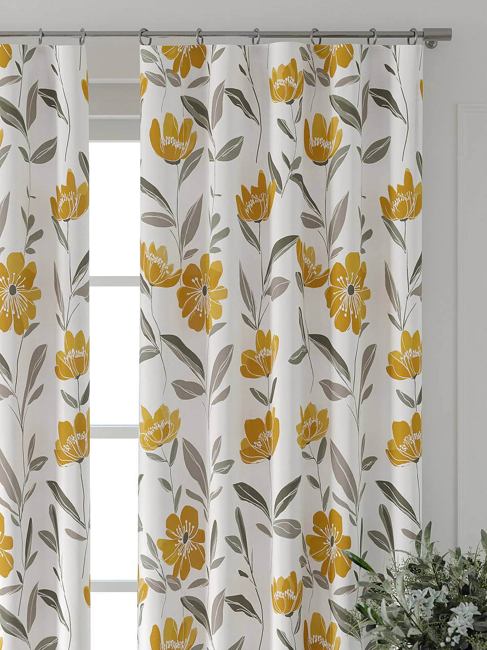По верхнему краю портьер пришита шторная тесьма 6 см, с ее помощью затянув узелки от кордовых нитей с обеих сторон и стянув их до нужного размера можно сформировать округлые складки, далее вставить крючки в кармашки и повесить на карниз. Обязательно проверьте кордовые нити – они должны быть надежно завязаны, в противном случае во время стягивания они могут вылететь. Шторная тесьма имеет два ряда кармашков, с их помощью можно регулировать не только длину, но и ширину. Такое крепление подходит для всех типов карнизов.