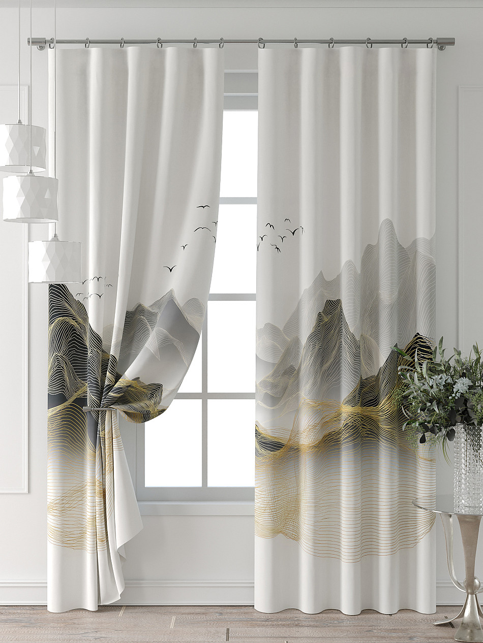 Портьеры 2 шт: Комплект штор из портьерной ткани с печатным рисунком. Фактура ткани прекрасно гармонирует с любым интерьером, а печатный рисунок дает широкие возможности обновить интерьер, фактически не требуя ремонта, за счет огромного выбора. Ткань износостойкая и не требует особого ухода, превосходно драпируется образуя струящиеся складки. Прекрасное решение для создания красоты и уюта с помощью уникальных дизайнов.