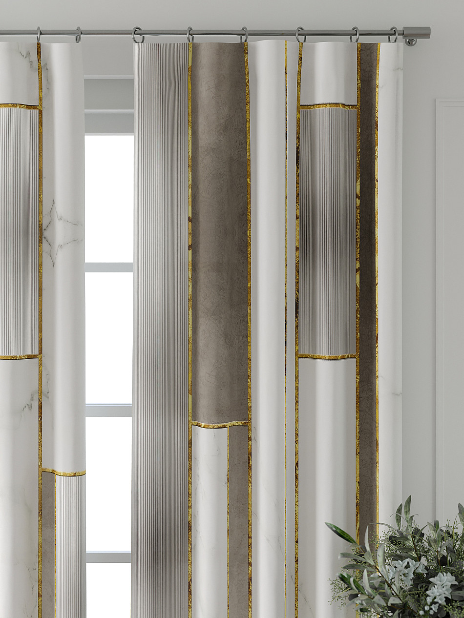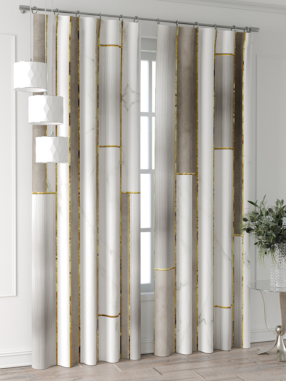 Портьеры 2 шт: Комплект штор из портьерной ткани с печатным рисунком. Фактура ткани прекрасно гармонирует с любым интерьером, а печатный рисунок дает широкие возможности обновить интерьер, фактически не требуя ремонта, за счет огромного выбора. Ткань износостойкая и не требует особого ухода, превосходно драпируется образуя струящиеся складки. Прекрасное решение для создания красоты и уюта с помощью уникальных дизайнов.