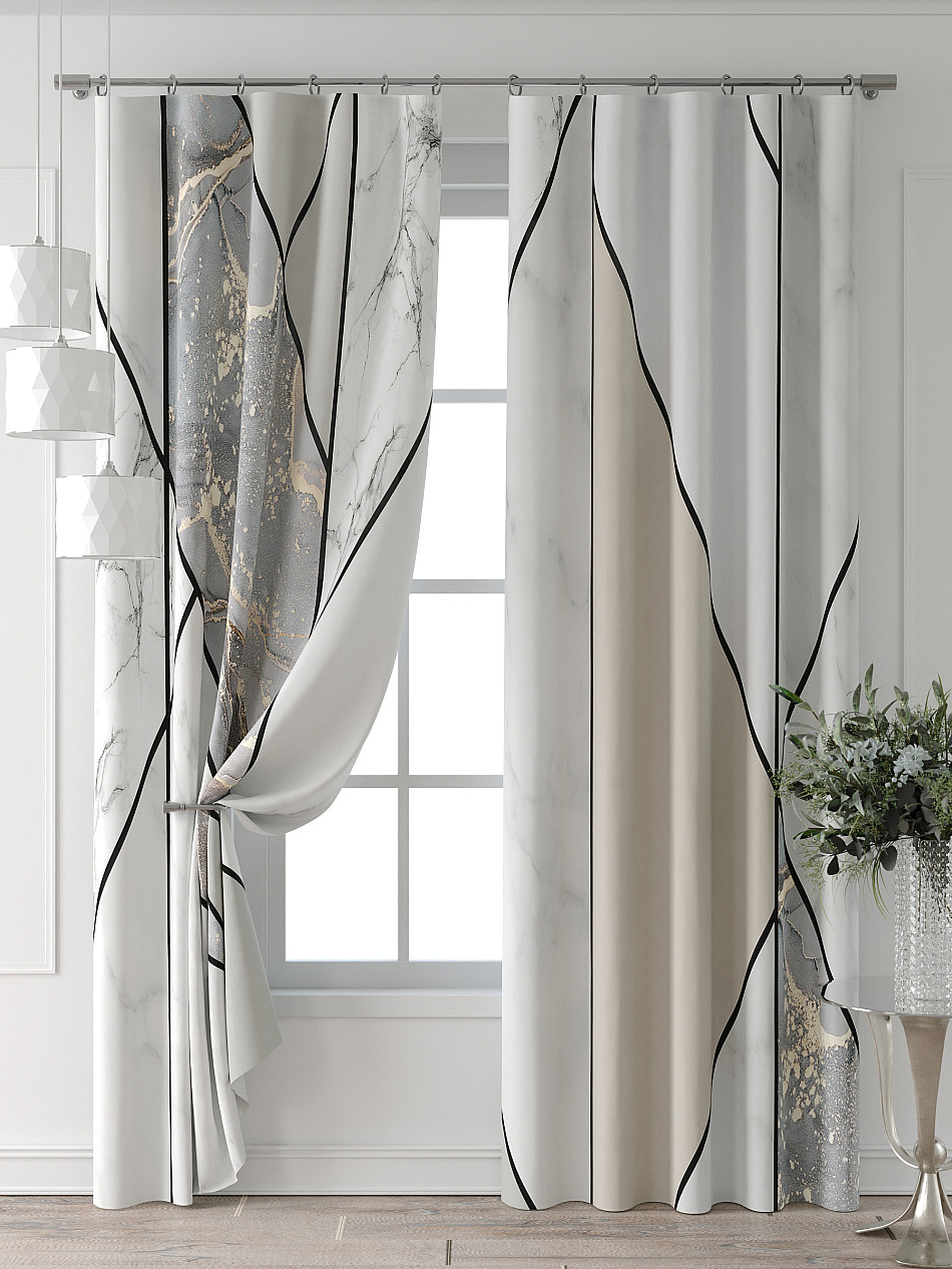 Портьеры 2 шт: Комплект штор из портьерной ткани с печатным рисунком. Фактура ткани прекрасно гармонирует с любым интерьером, а печатный рисунок дает широкие возможности обновить интерьер, фактически не требуя ремонта, за счет огромного выбора. Ткань износостойкая и не требует особого ухода, превосходно драпируется образуя струящиеся складки. Прекрасное решение для создания красоты и уюта с помощью уникальных дизайнов.