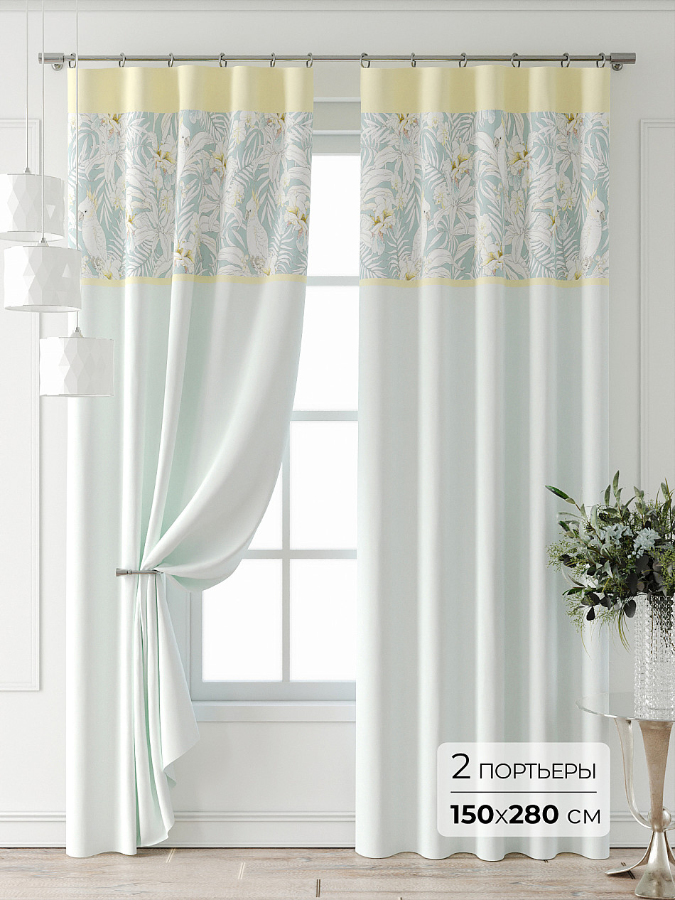 Портьера 2 шт. — 150х280 см. ( Уменьшить высоту ) Крепление: шторная лента (крючки), кулиска Подробнее