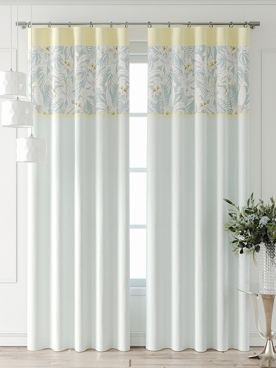 Комплект штор из легкой портьерной ткани (габардин) оформлен печатным рисунком. Печатный рисунок дает широкие возможности обновить интерьер фактически нет требуя ремонта за счет огромного выбора. Ткани с печатным рисунком безопасны и не содержат токсичных веществ. Не смотря на то что, материал легкий, он имеет высокую плотность, мало загрязнятся и не требует особого ухода даже после стирки, что важно для кухонных занавесок. Шторы не выцветают, не растягиваются, превосходно драпируются, образуя струящиеся складки. Прекрасное решение для создания красоты и уюта с помощью уникальных дизайнов.