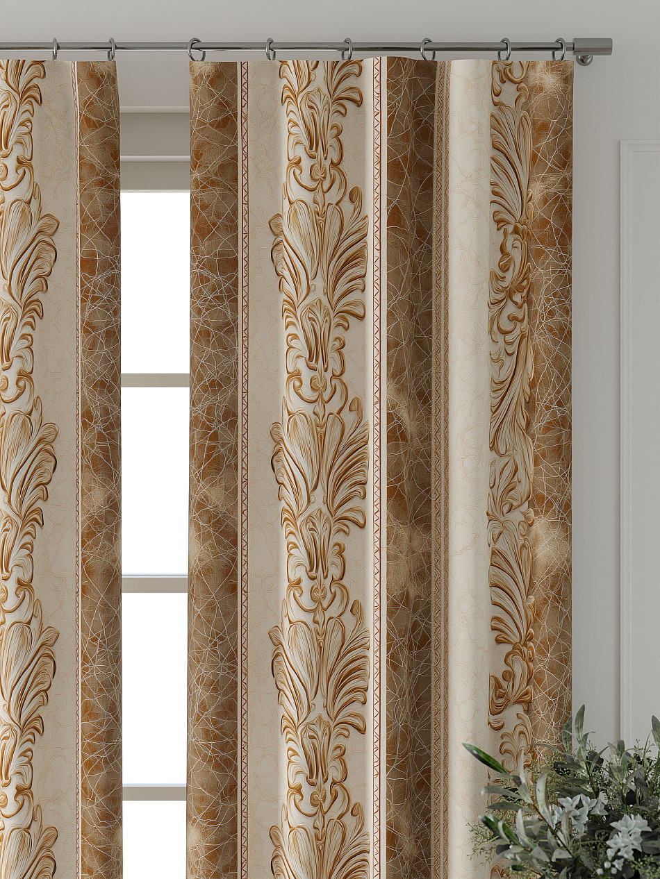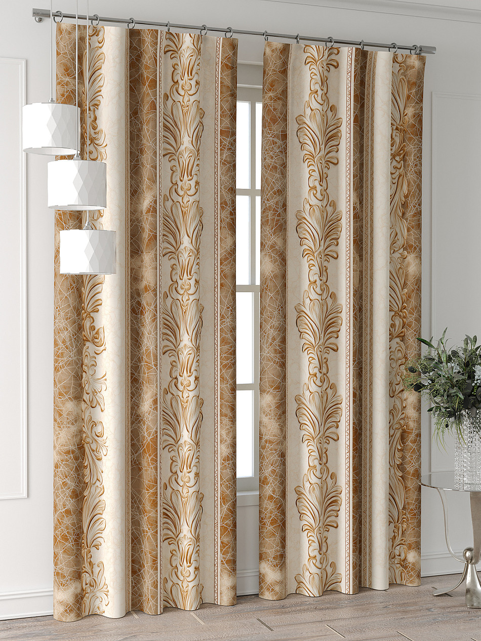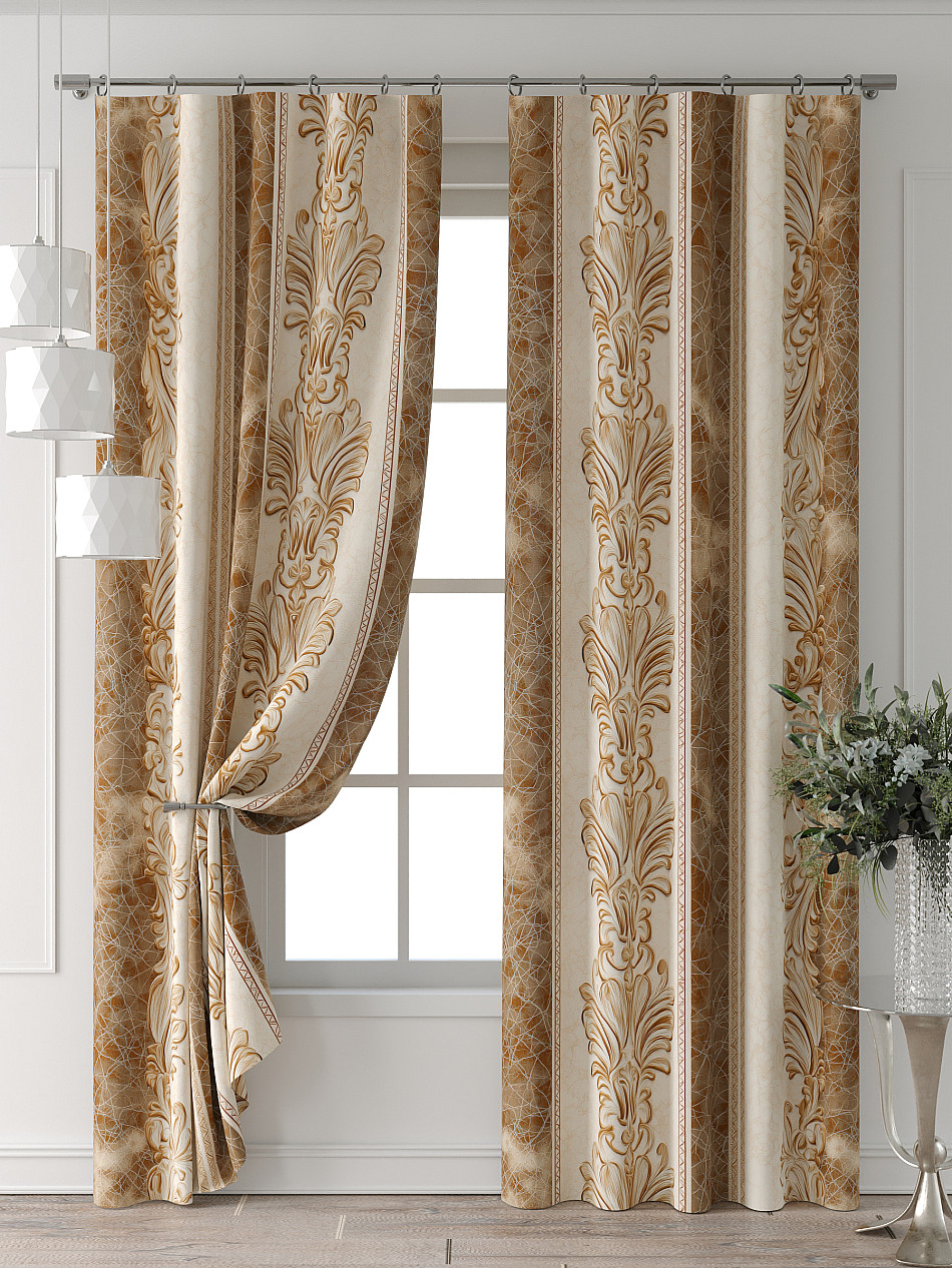 Портьеры 2 шт: Комплект штор из портьерной ткани с печатным рисунком. Фактура ткани прекрасно гармонирует с любым интерьером, а печатный рисунок дает широкие возможности обновить интерьер, фактически не требуя ремонта, за счет огромного выбора. Ткань износостойкая и не требует особого ухода, превосходно драпируется образуя струящиеся складки. Прекрасное решение для создания красоты и уюта с помощью уникальных дизайнов.