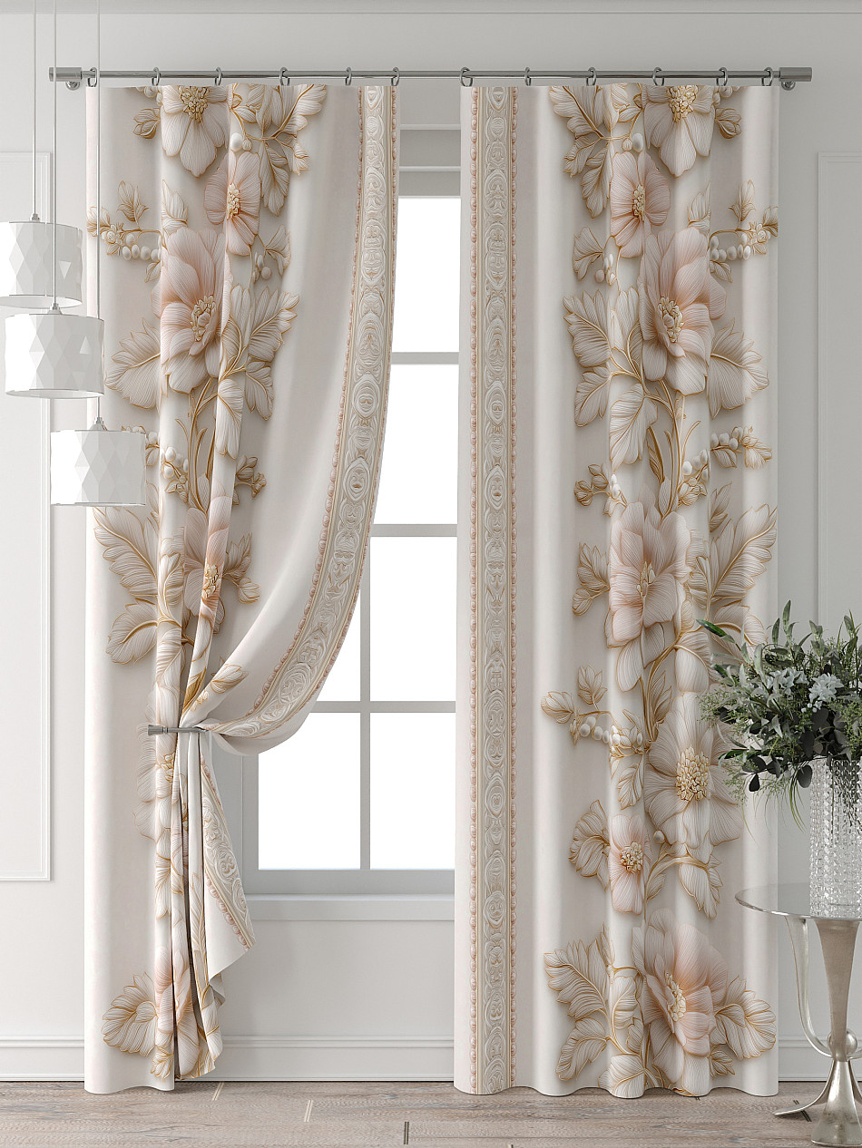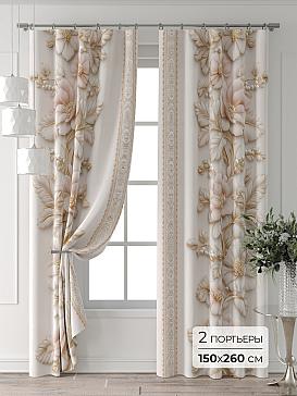Портьера 2 шт. Подхват - доп.услуга. Комплект штор из легкой портьерной ткани (габардин) оформлен печатным рисунком. Печатный рисунок дает широкие возможности обновить интерьер фактически нет требуя ремонта за счет огромного выбора. Ткани с печатным рисунком безопасны и не содержат токсичных веществ. Не смотря на то что, материал легкий, он имеет высокую плотность, мало загрязнятся и не требует особого ухода даже после стирки, что важно для кухонных занавесок. Шторы не выцветают, не растягиваются, превосходно драпируются, образуя струящиеся складки. Прекрасное решение для создания красоты и уюта с помощью уникальных дизайнов.