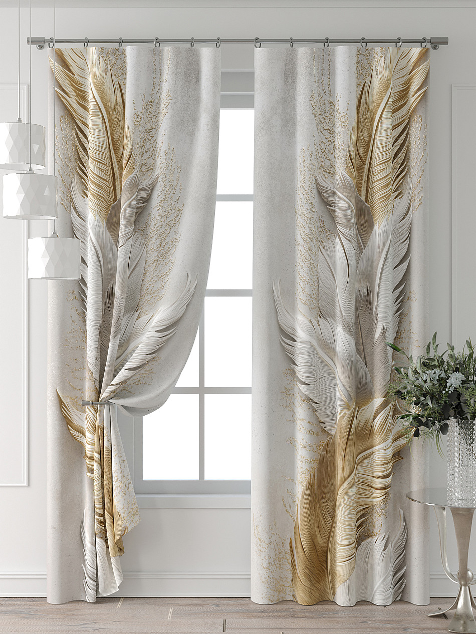 Портьера 2 шт. Подхват - доп.услуга. Комплект штор из легкой портьерной ткани (габардин) оформлен печатным рисунком. Печатный рисунок дает широкие возможности обновить интерьер фактически нет требуя ремонта за счет огромного выбора. Ткани с печатным рисунком безопасны и не содержат токсичных веществ. Не смотря на то что, материал легкий, он имеет высокую плотность, мало загрязнятся и не требует особого ухода даже после стирки, что важно для кухонных занавесок. Шторы не выцветают, не растягиваются, превосходно драпируются, образуя струящиеся складки. Прекрасное решение для создания красоты и уюта с помощью уникальных дизайнов.