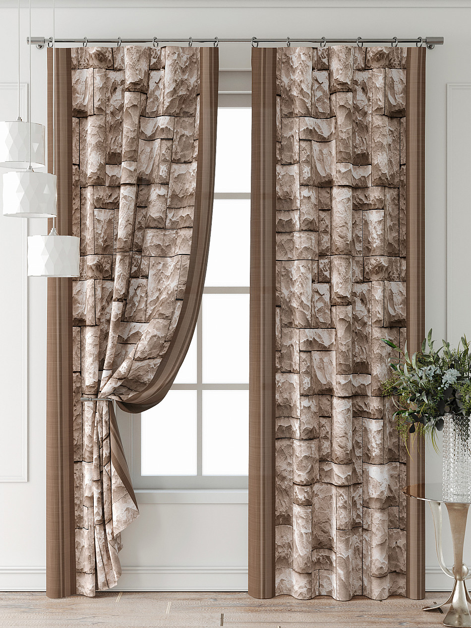 Полоска Фактура (дерево, камни, мрамор) Фото принтАксессуары для оформления штор: