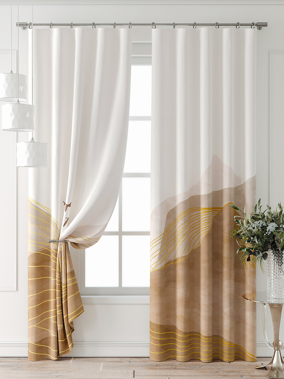 Портьеры 2 шт: Комплект штор из портьерной ткани с печатным рисунком. Фактура ткани прекрасно гармонирует с любым интерьером, а печатный рисунок дает широкие возможности обновить интерьер, фактически не требуя ремонта, за счет огромного выбора. Ткань износостойкая и не требует особого ухода, превосходно драпируется образуя струящиеся складки. Прекрасное решение для создания красоты и уюта с помощью уникальных дизайнов.