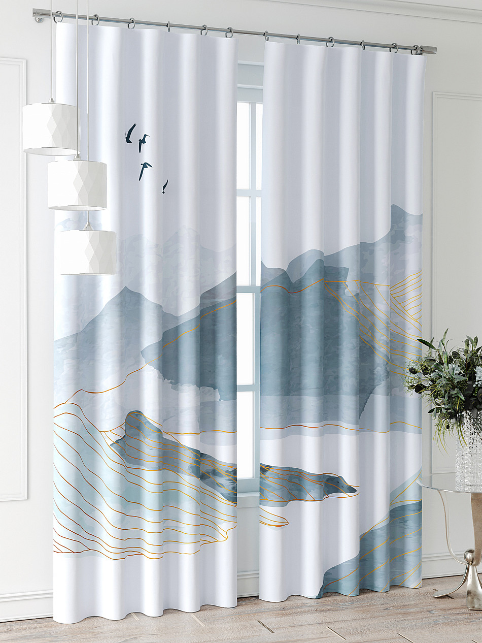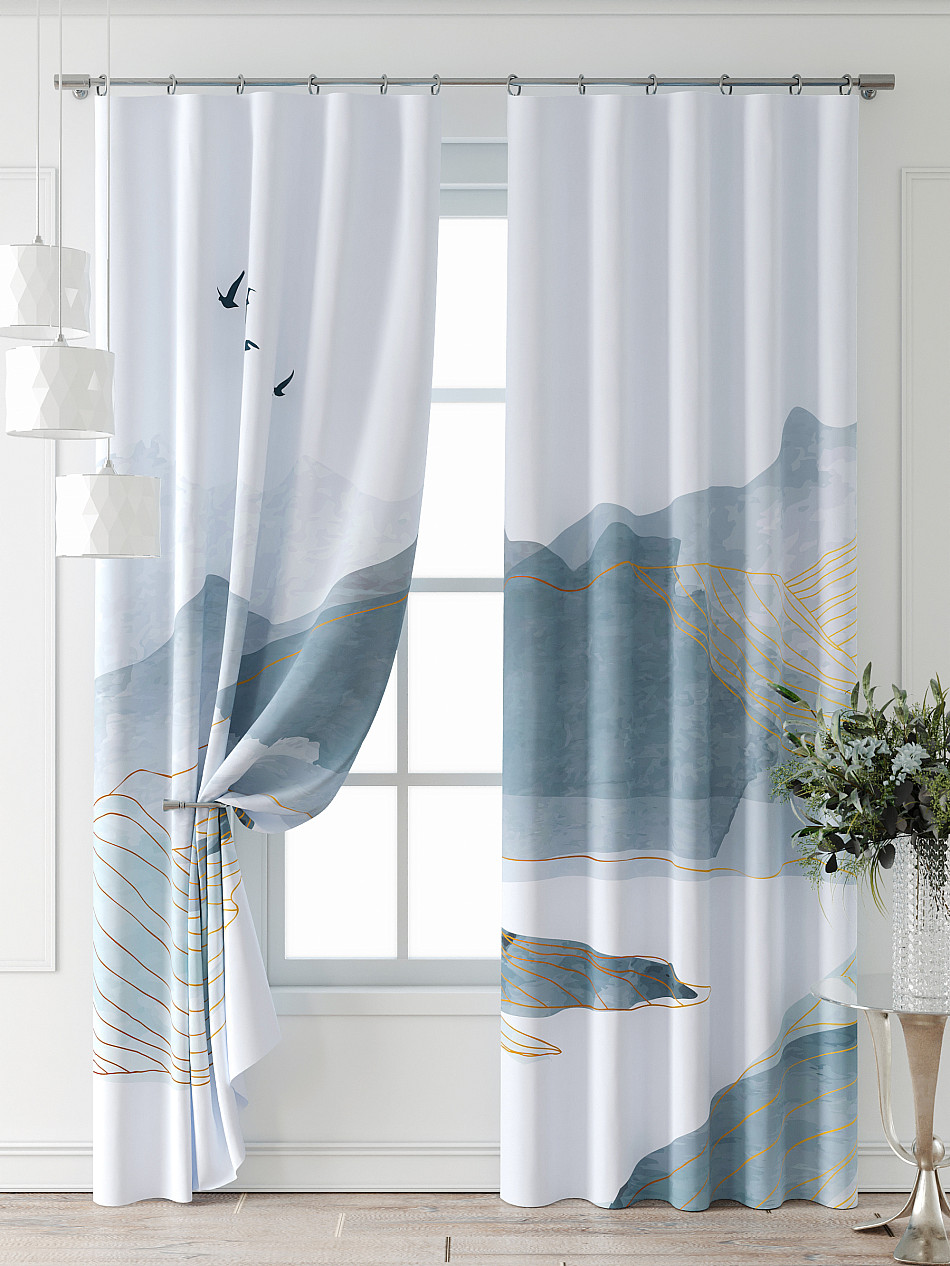 Портьера 2 шт. Подхват - доп.услуга. Комплект штор из легкой портьерной ткани (габардин) оформлен печатным рисунком. Печатный рисунок дает широкие возможности обновить интерьер фактически нет требуя ремонта за счет огромного выбора. Ткани с печатным рисунком безопасны и не содержат токсичных веществ. Не смотря на то что, материал легкий, он имеет высокую плотность, мало загрязнятся и не требует особого ухода даже после стирки, что важно для кухонных занавесок. Шторы не выцветают, не растягиваются, превосходно драпируются, образуя струящиеся складки. Прекрасное решение для создания красоты и уюта с помощью уникальных дизайнов.