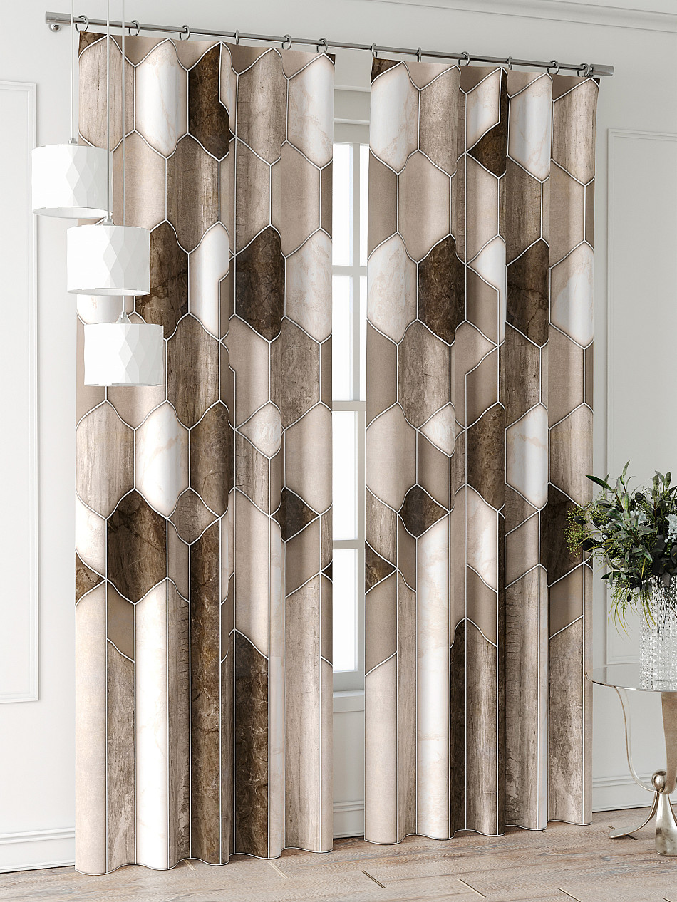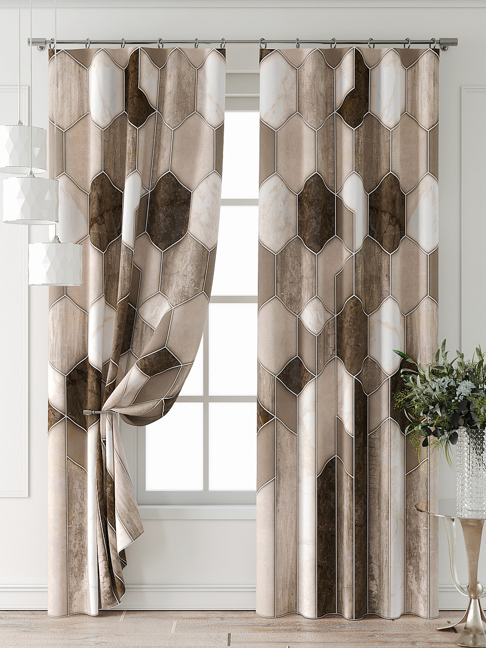 Портьера 2 шт. Подхват - доп.услуга. Комплект штор из легкой портьерной ткани (габардин) оформлен печатным рисунком. Печатный рисунок дает широкие возможности обновить интерьер фактически нет требуя ремонта за счет огромного выбора. Ткани с печатным рисунком безопасны и не содержат токсичных веществ. Не смотря на то что, материал легкий, он имеет высокую плотность, мало загрязнятся и не требует особого ухода даже после стирки, что важно для кухонных занавесок. Шторы не выцветают, не растягиваются, превосходно драпируются, образуя струящиеся складки. Прекрасное решение для создания красоты и уюта с помощью уникальных дизайнов.