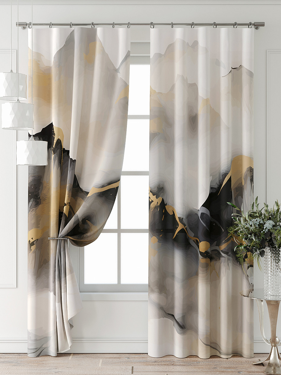 Портьеры 2 шт: Комплект штор из портьерной ткани с печатным рисунком. Фактура ткани прекрасно гармонирует с любым интерьером, а печатный рисунок дает широкие возможности обновить интерьер, фактически не требуя ремонта, за счет огромного выбора. Ткань износостойкая и не требует особого ухода, превосходно драпируется образуя струящиеся складки. Прекрасное решение для создания красоты и уюта с помощью уникальных дизайнов.