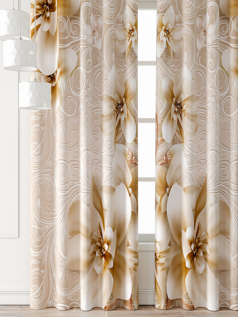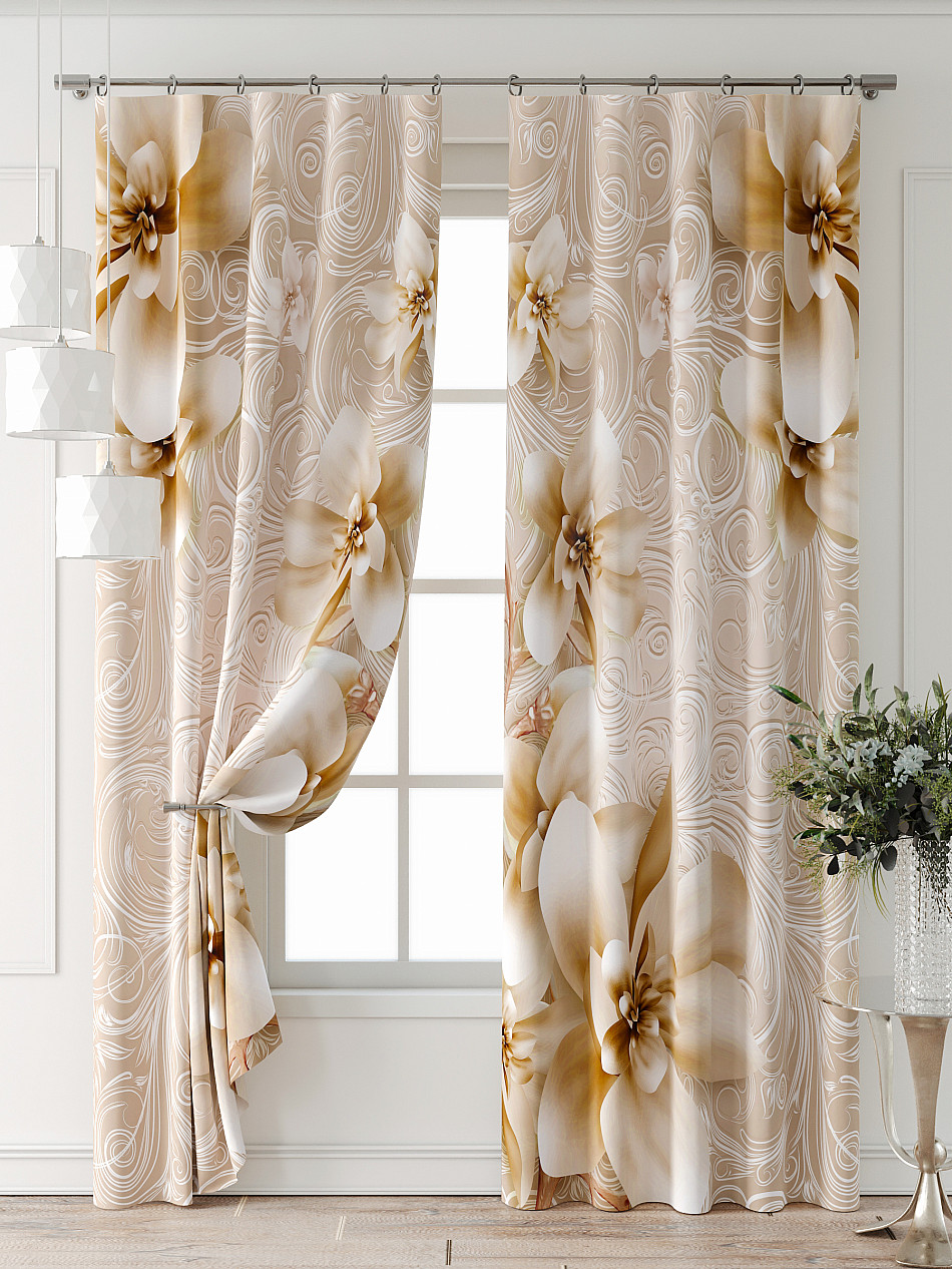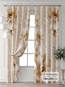 Портьера 2 шт. Подхват - доп.услуга. Комплект штор из легкой портьерной ткани (габардин) оформлен печатным рисунком. Печатный рисунок дает широкие возможности обновить интерьер фактически нет требуя ремонта за счет огромного выбора. Ткани с печатным рисунком безопасны и не содержат токсичных веществ. Не смотря на то что, материал легкий, он имеет высокую плотность, мало загрязнятся и не требует особого ухода даже после стирки, что важно для кухонных занавесок. Шторы не выцветают, не растягиваются, превосходно драпируются, образуя струящиеся складки. Прекрасное решение для создания красоты и уюта с помощью уникальных дизайнов.