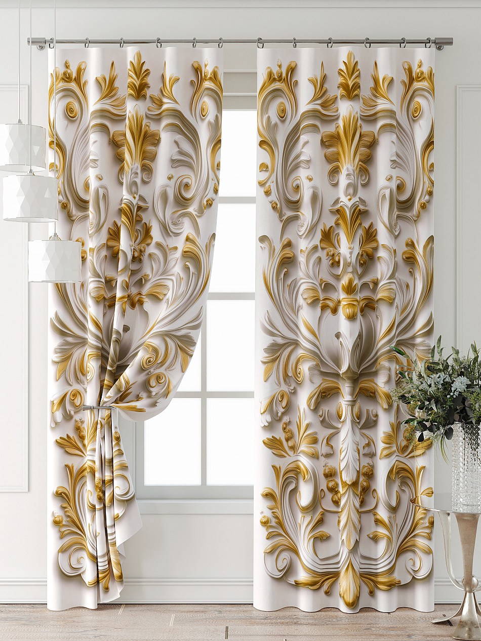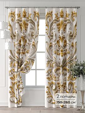 Портьера 2 шт. Подхват - доп.услуга. Комплект штор из легкой портьерной ткани (габардин) оформлен печатным рисунком. Печатный рисунок дает широкие возможности обновить интерьер фактически нет требуя ремонта за счет огромного выбора. Ткани с печатным рисунком безопасны и не содержат токсичных веществ. Не смотря на то что, материал легкий, он имеет высокую плотность, мало загрязнятся и не требует особого ухода даже после стирки, что важно для кухонных занавесок. Шторы не выцветают, не растягиваются, превосходно драпируются, образуя струящиеся складки. Прекрасное решение для создания красоты и уюта с помощью уникальных дизайнов.