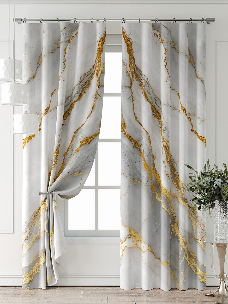Портьеры 2 шт: Комплект штор из портьерной ткани с печатным рисунком. Фактура ткани прекрасно гармонирует с любым интерьером, а печатный рисунок дает широкие возможности обновить интерьер, фактически не требуя ремонта, за счет огромного выбора. Ткань износостойкая и не требует особого ухода, превосходно драпируется образуя струящиеся складки. Прекрасное решение для создания красоты и уюта с помощью уникальных дизайнов.