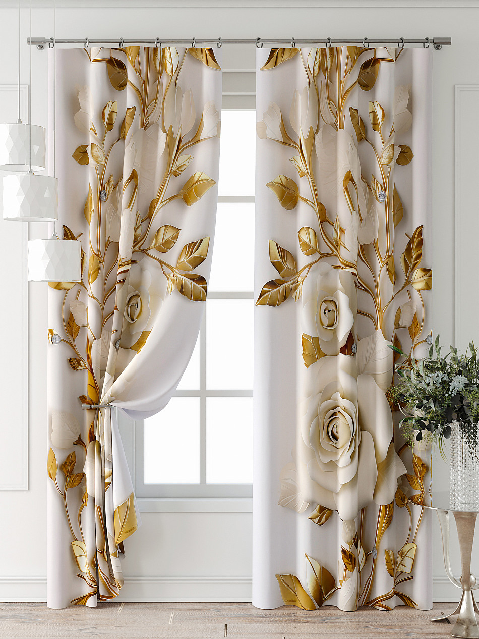 С розами Фото принт ЦветочныйАксессуары для оформления штор: