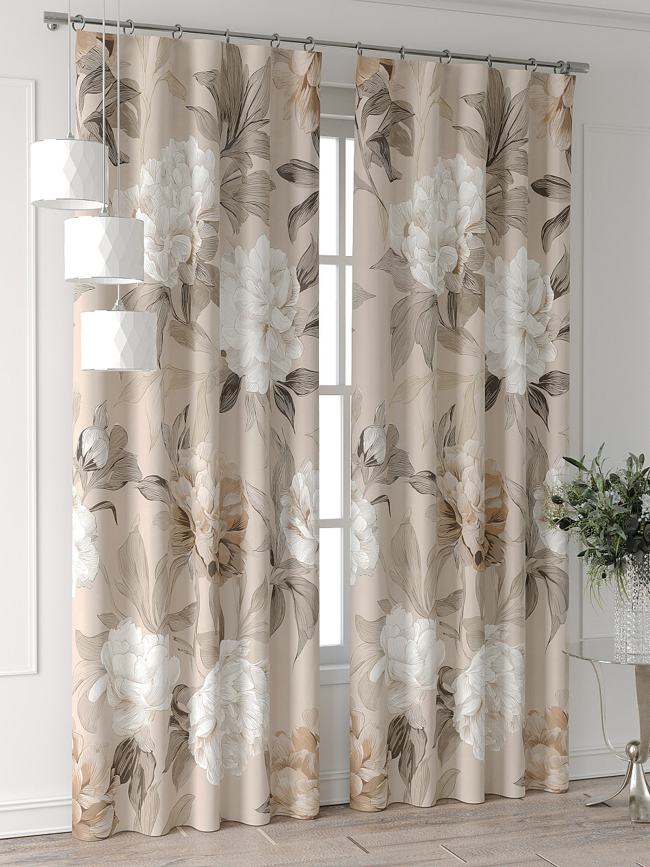 Портьера 2 шт. Подхват - доп.услуга. Комплект штор из легкой портьерной ткани (габардин) оформлен печатным рисунком. Печатный рисунок дает широкие возможности обновить интерьер фактически нет требуя ремонта за счет огромного выбора. Ткани с печатным рисунком безопасны и не содержат токсичных веществ. Не смотря на то что, материал легкий, он имеет высокую плотность, мало загрязнятся и не требует особого ухода даже после стирки, что важно для кухонных занавесок. Шторы не выцветают, не растягиваются, превосходно драпируются, образуя струящиеся складки. Прекрасное решение для создания красоты и уюта с помощью уникальных дизайнов.