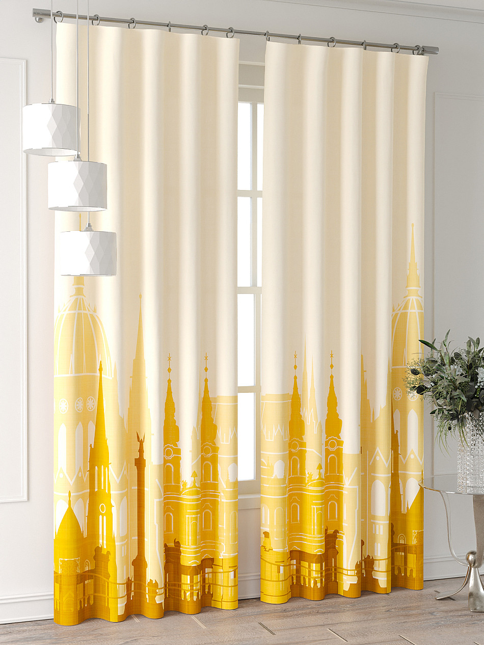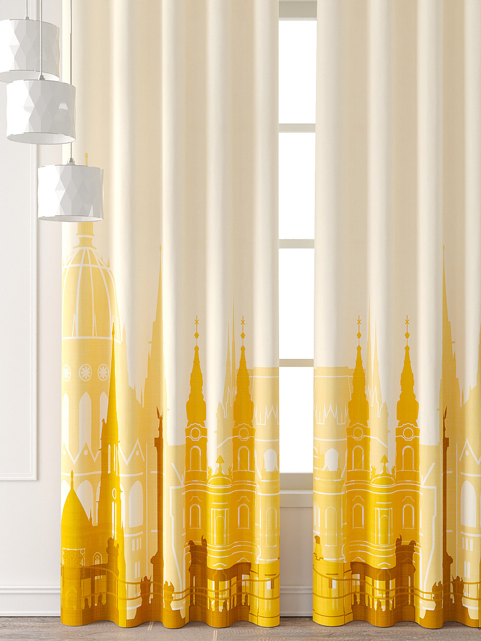 Комплект штор из легкой портьерной ткани (габардин) оформлен печатным рисунком. Печатный рисунок дает широкие возможности обновить интерьер фактически нет требуя ремонта за счет огромного выбора. Ткани с печатным рисунком безопасны и не содержат токсичных веществ. Не смотря на то что, материал легкий, он имеет высокую плотность, мало загрязнятся и не требует особого ухода даже после стирки, что важно для кухонных занавесок. Шторы не выцветают, не растягиваются, превосходно драпируются, образуя струящиеся складки. Прекрасное решение для создания красоты и уюта с помощью уникальных дизайнов.