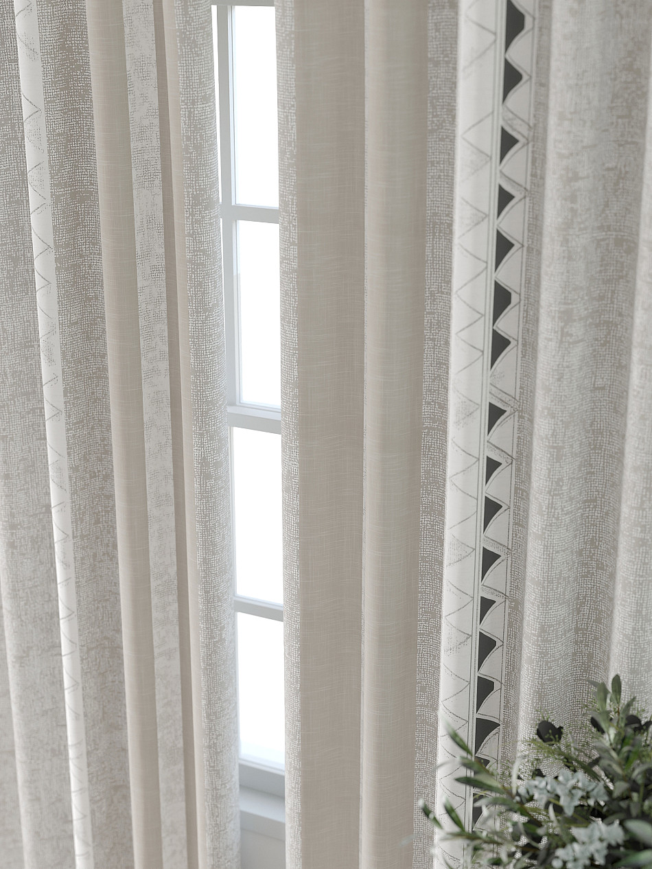 По верхнему краю портьер пришита шторная тесьма 6 см, с ее помощью затянув узелки от кордовых нитей с обеих сторон и стянув их до нужного размера можно сформировать округлые складки, далее вставить крючки в кармашки и повесить на карниз. Обязательно проверьте кордовые нити – они должны быть надежно завязаны, в противном случае во время стягивания они могут вылететь. Шторная тесьма имеет два ряда кармашков, с их помощью можно регулировать не только длину, но и ширину. Такое крепление подходит для всех типов карнизов.